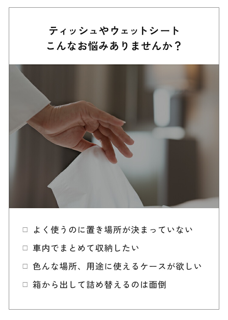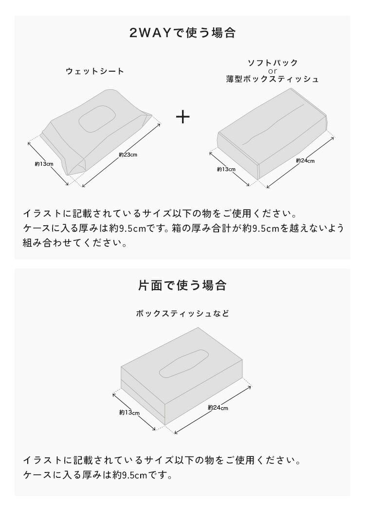 ・ご使用のティッシュやウェットシートのサイズ・形状によっては入らない場合があります。あらかじめサイズをご確認ください。