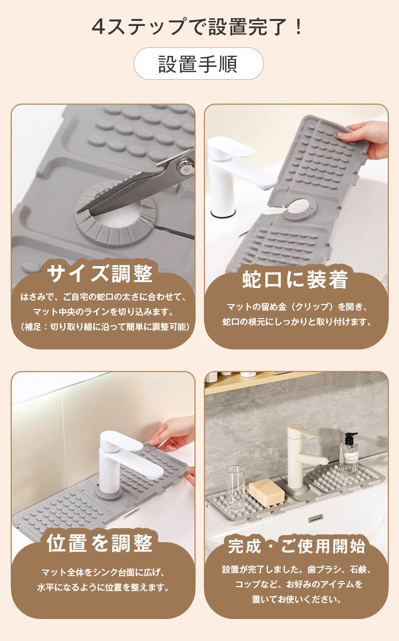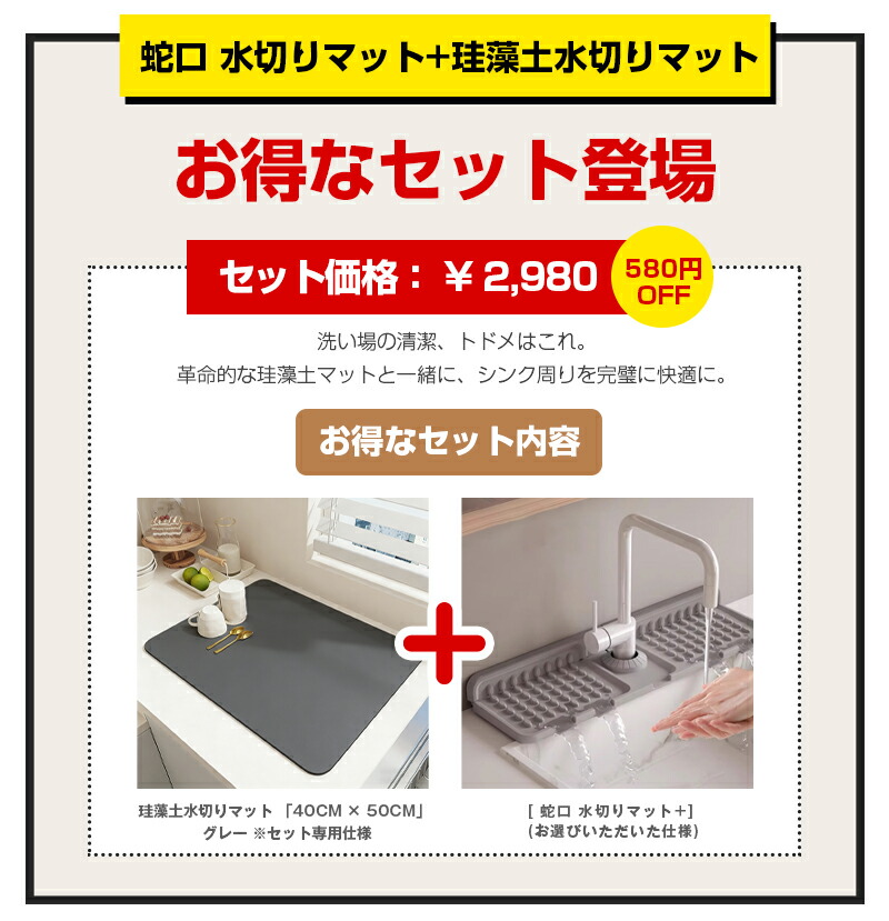 水切り 蛇口 水切りマット 大判 斜面 キッチン整理用品 その他 早い者勝ち 排水マットのみ 排水マット+珪藻土吸水マット グレー ベージュ