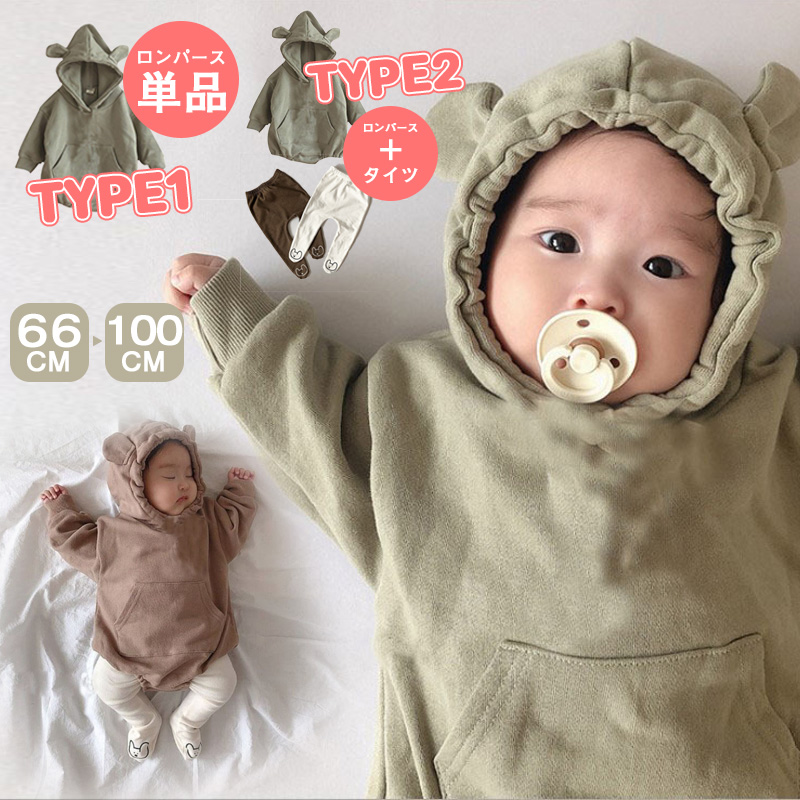 ロンパース単品or ロンパース+タイツの2点セット 新生児 服 スウェット 女の子 男の子 カバーオール ベビー ベビー服 春 秋 秋冬 韓国 可愛い 洋服 パジャマ 赤ちゃん お食い初め ギ キッズ