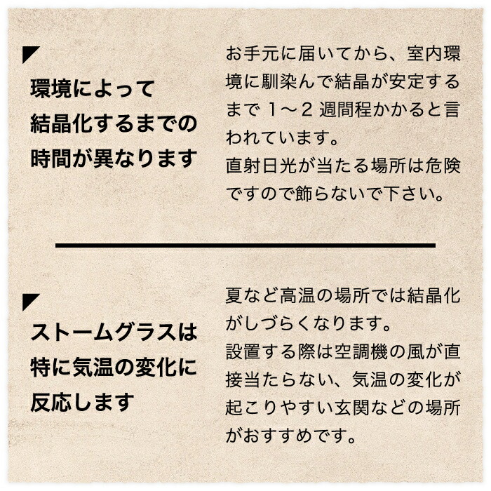 お手元に届いてから、室内環境になじんで結晶が安定するまでに約1~2週間程かかると言われています。