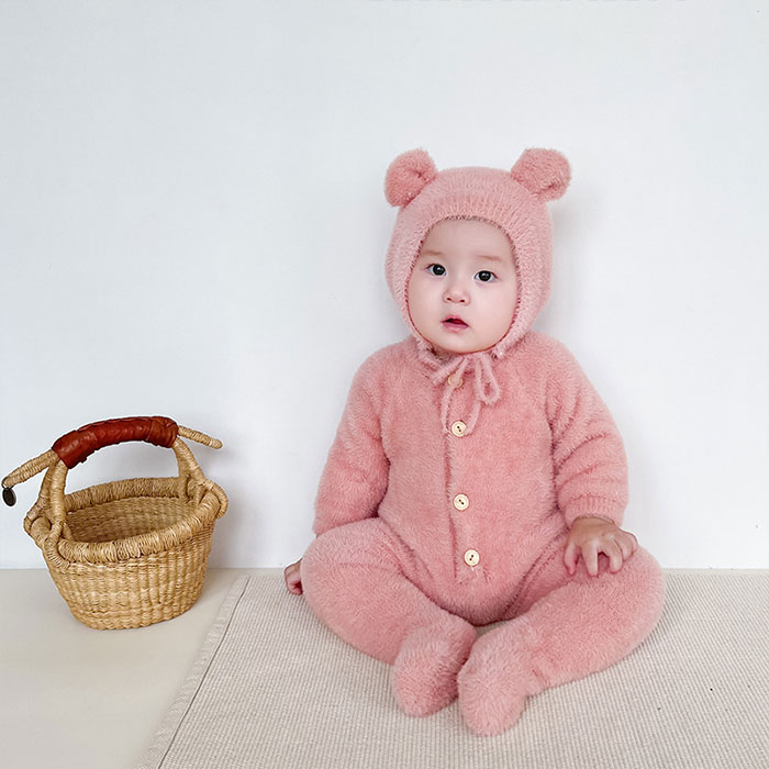 くまちゃん 着ぐるみ 熊耳 ロンパース キッズ ベビー マタニティ 人気 キャメル ピンク ホワイト グレー 66cm 73cm 80cm 90cm 100cm