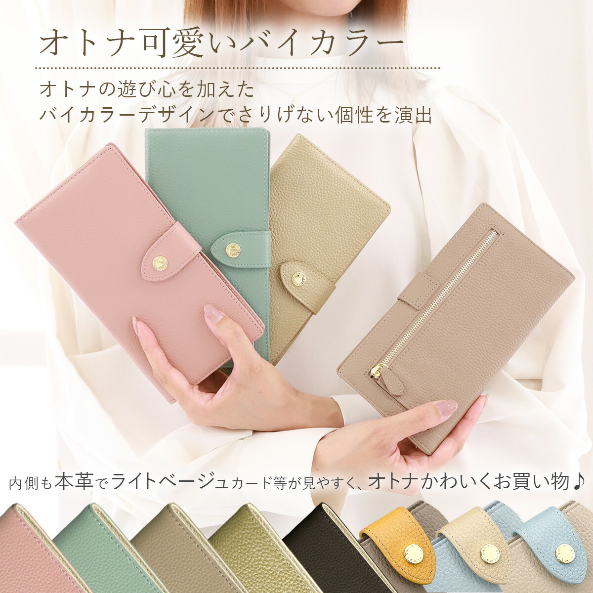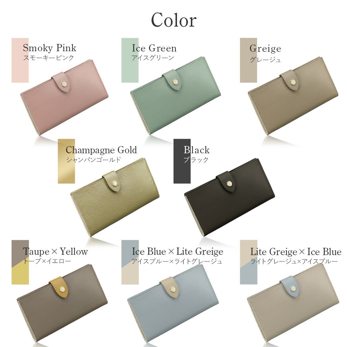長財布 レディース 薄い 財布 本革 財布 ケース レディース財布 新登場! スモーキーピンク アイスグリーン グレージュ シャンパンゴールド ブラック トープ×イエロー アイスブルー×ライトグレージュ ライトグレージュ×アイスブルー