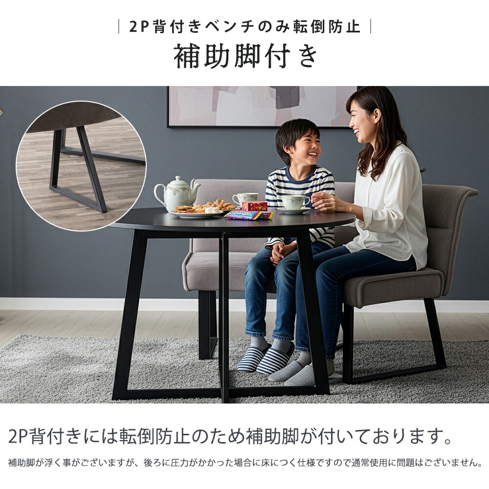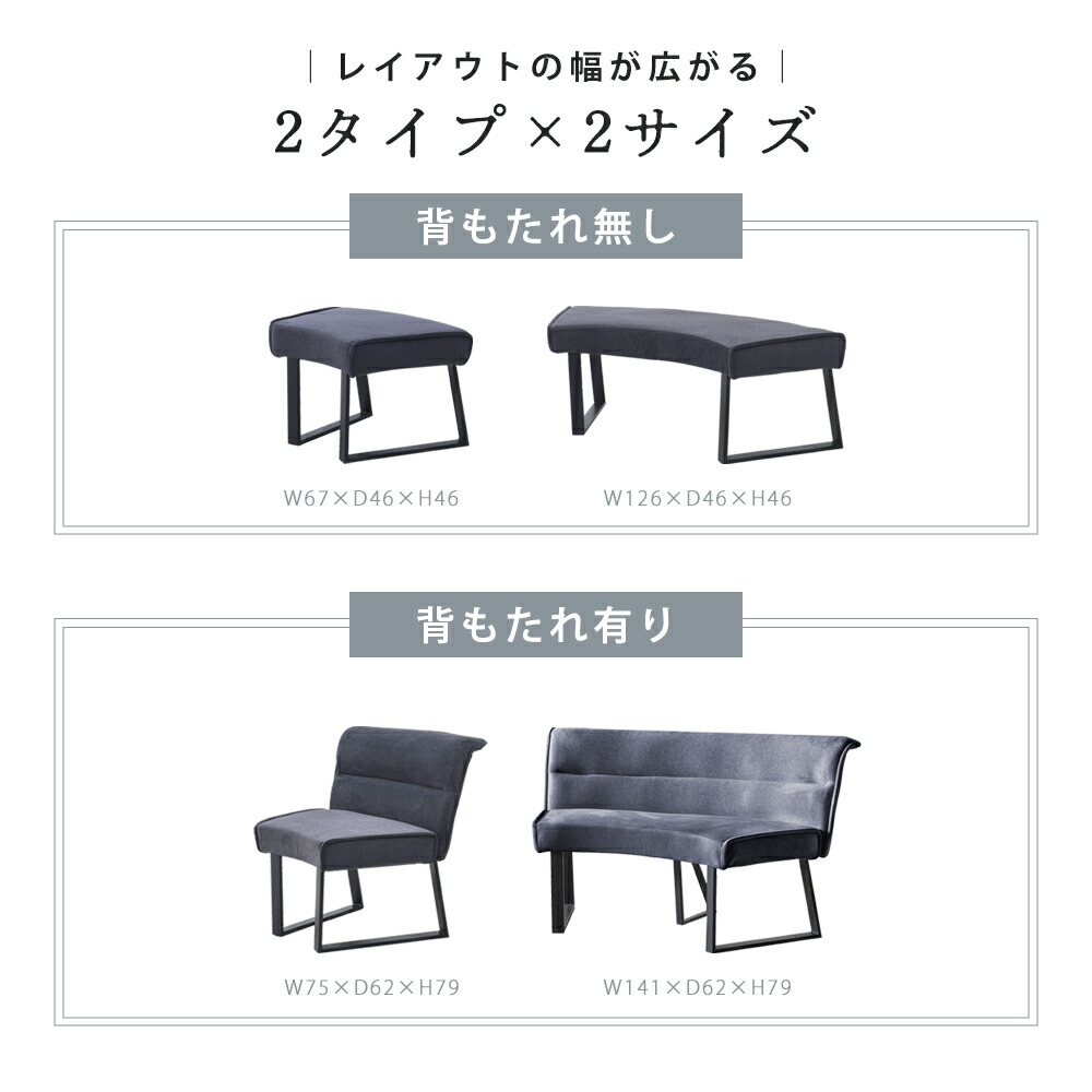 選べる4タイプ 1P背もたれ有り 1P背もたれ無し 2P背もたれ有り 2P背もたれ無し ラウンドテーブル対応 Φ120テーブル対応 座面厚11cm 厚みのある座面 クッション性が高い ファブリック ふぁぶりっく コージーファブリック こーじーふぁぶりっく ベロア調 べろあちょう ベロア風 べろあふう 座り心地が良い すわりごこちがよい 2P背もたれ有りのみ補助脚付き 安定感 あんていかん