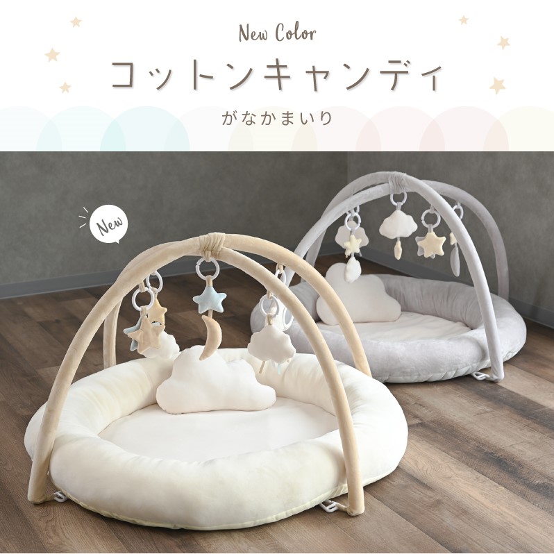 ベビージム プレイマット 赤ちゃん ベ おもちゃ ゲーム 早い者勝ち ミルクグレー コットンキャンディ
