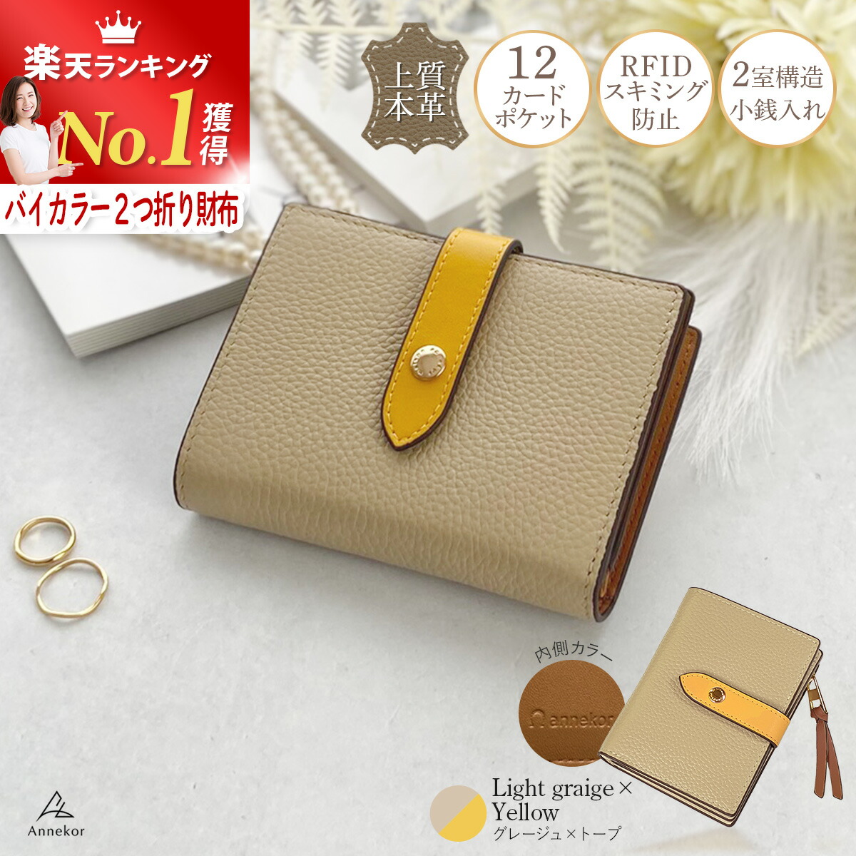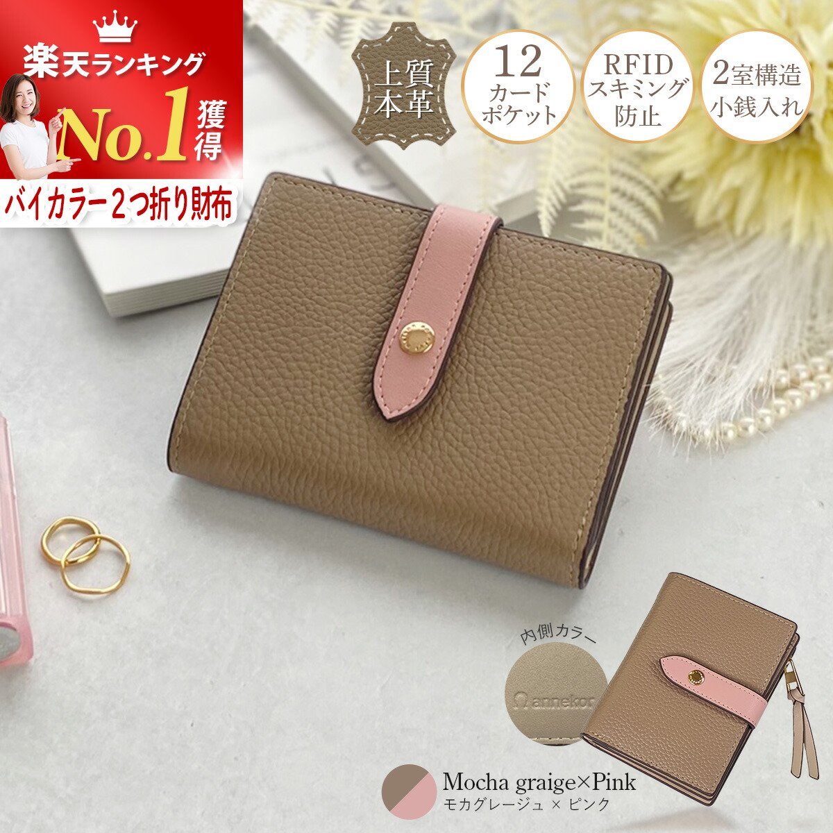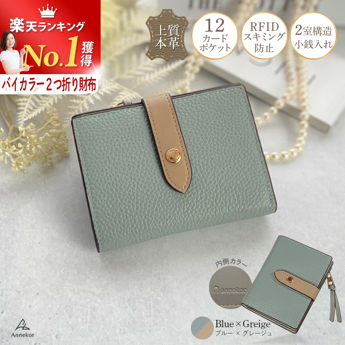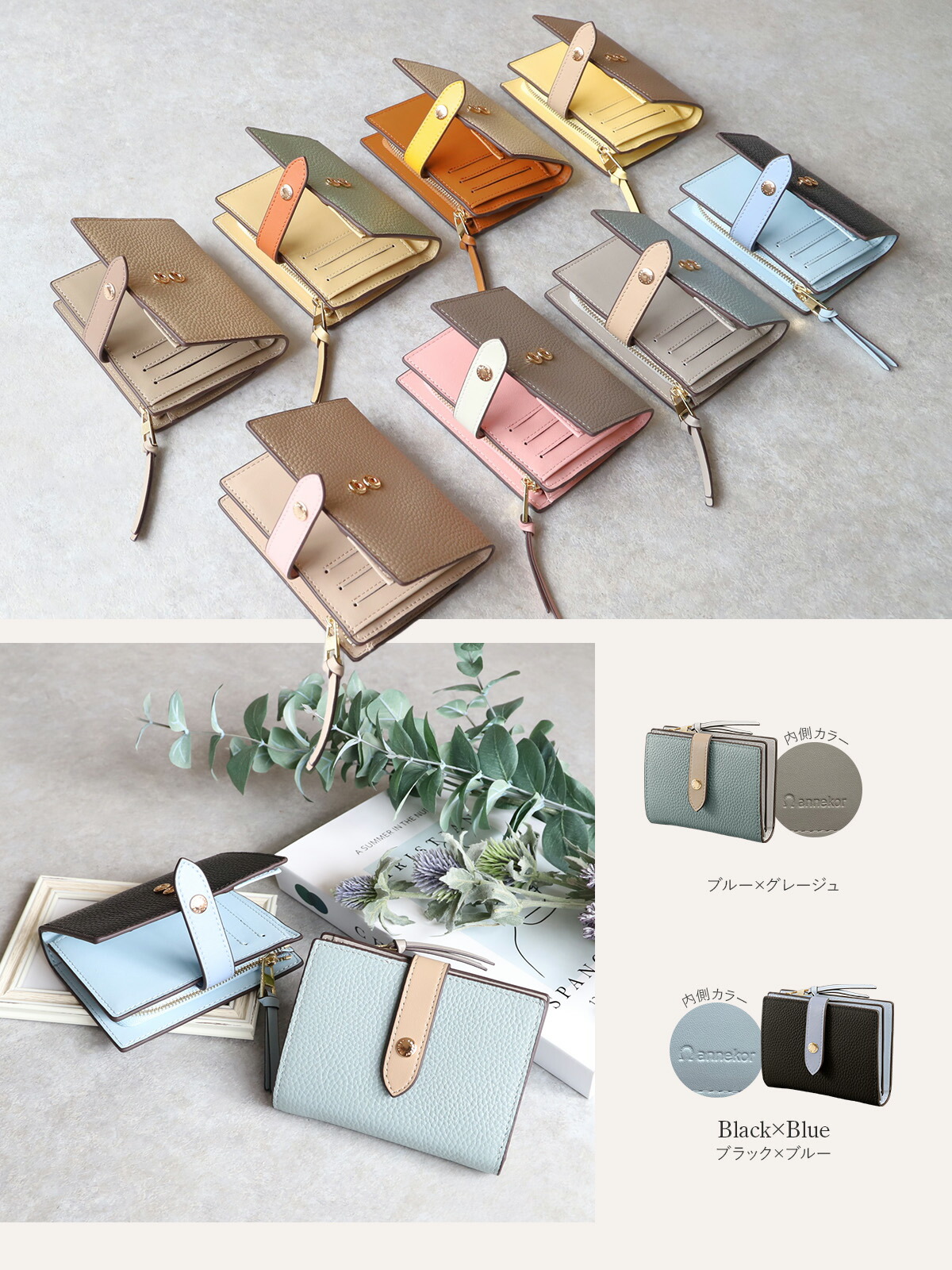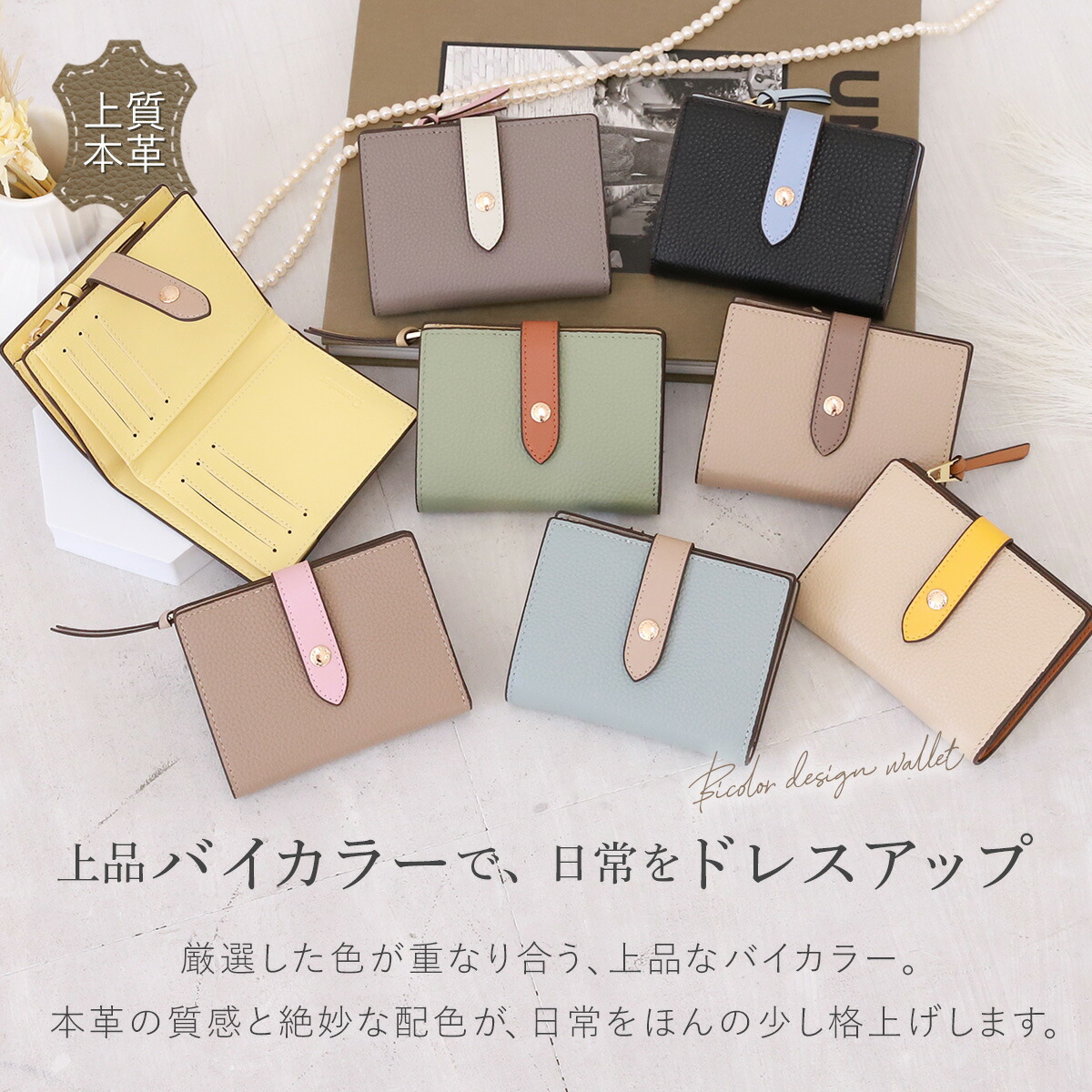 二つ折り財布 本革 財布 ミニ財布 レ 財布 ケース レディース財布 続々登場 ブラック×ブルー ブルー×グレージュ ピスタチオ×シナモン グレー×アイボリー グレージュ×トープ ライトグレージュ×イエロー モカグレージュ×ピンク トープ×グレージュ