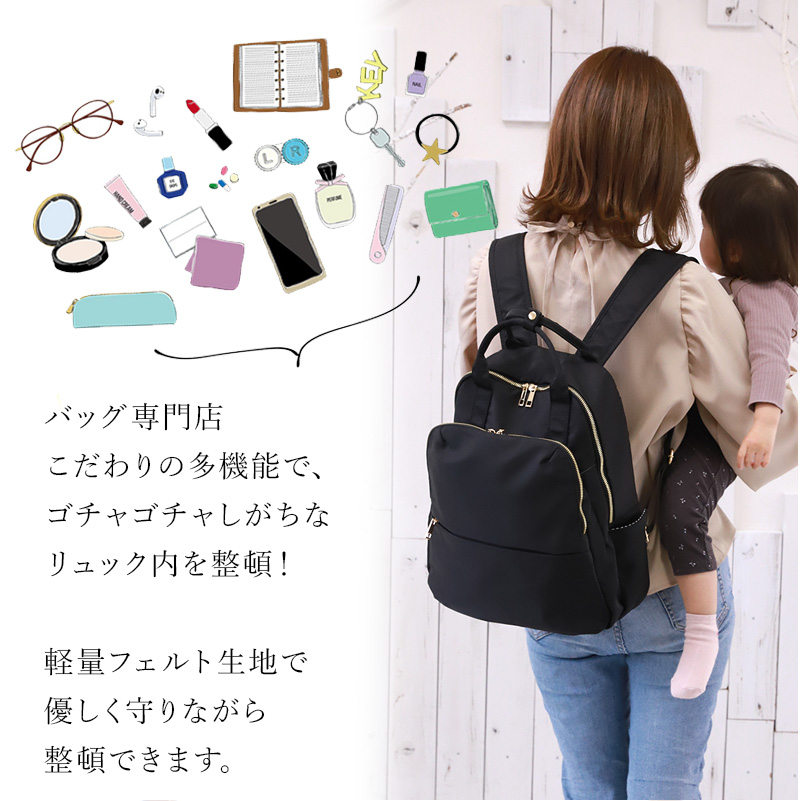バッグインバッグリュックインバック リ バッグ 小物 ブランド雑貨 特集 ブラック ペールグレー イエロー ピンク グリーン ベージュ