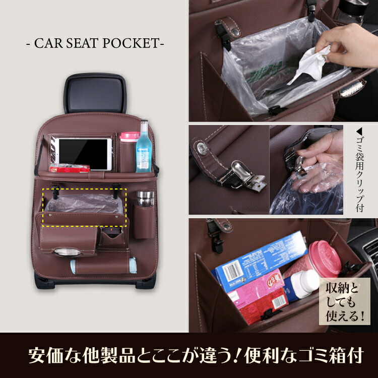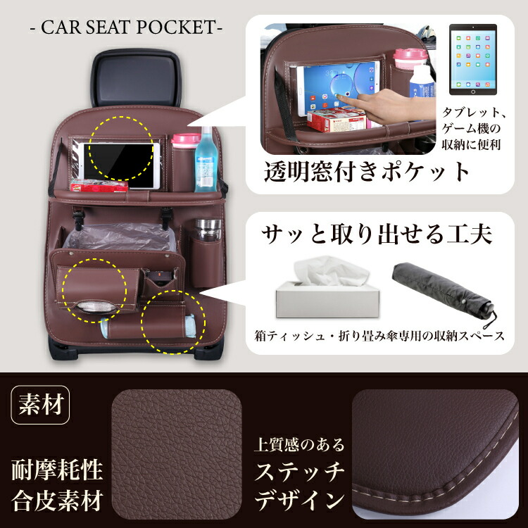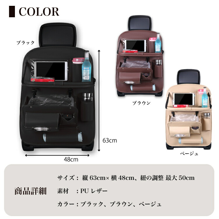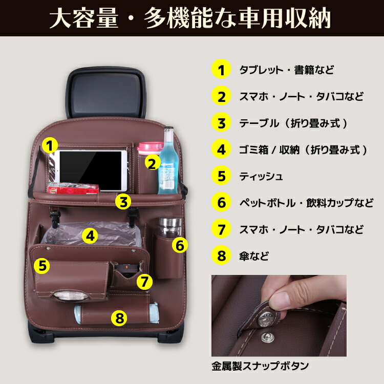 シートバックポケット 車 車内 テーブ ブラック ベージュ ブラウン