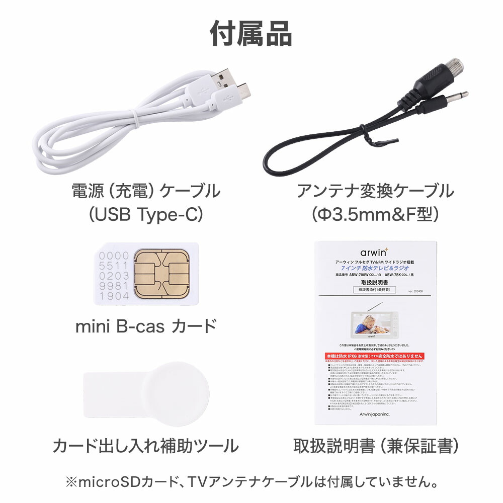 付属品:電源充電用Type-C ケーブル、アンテナ変換ケーブル、microSD カード取り出しツール