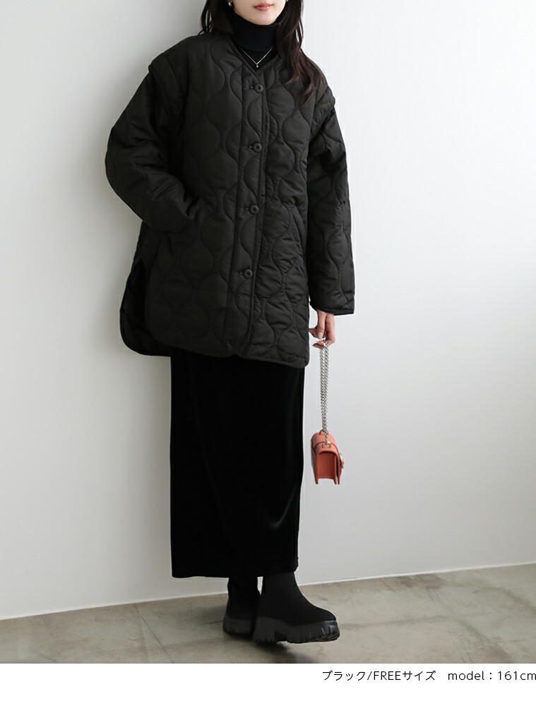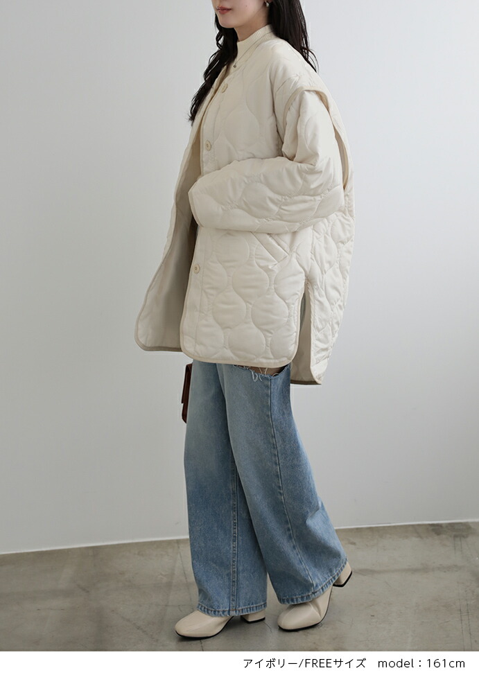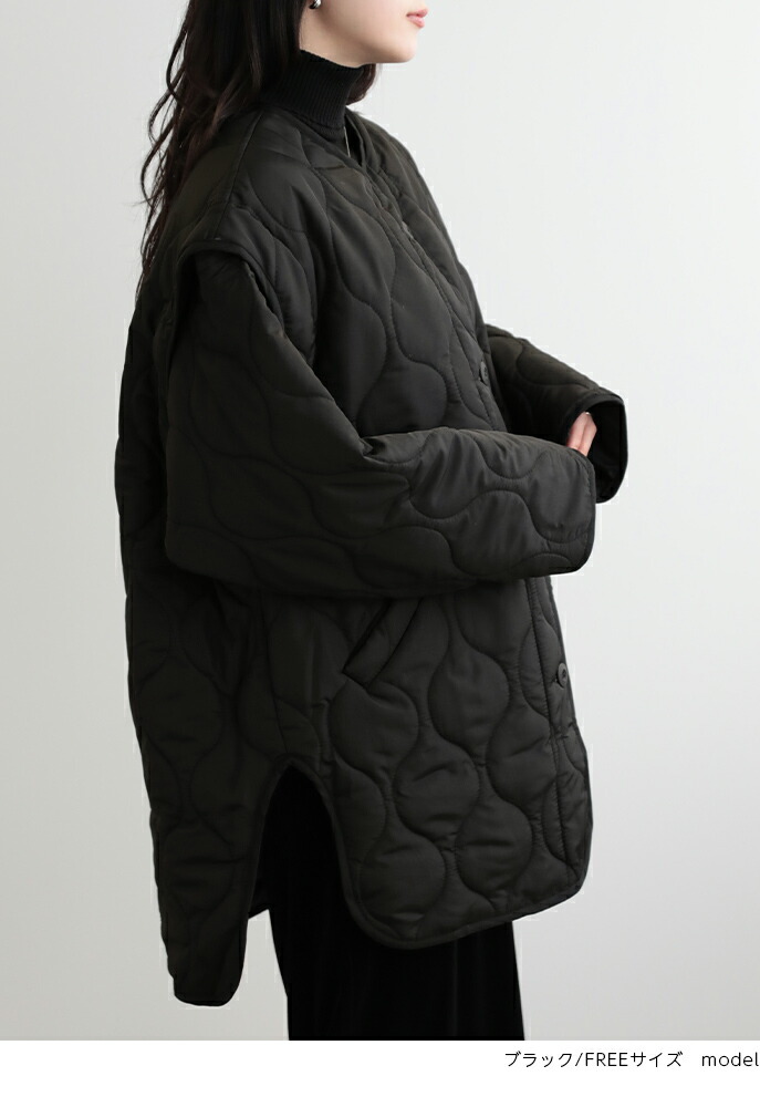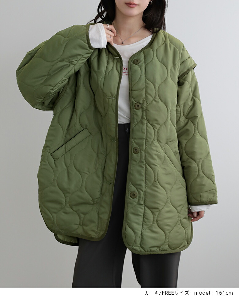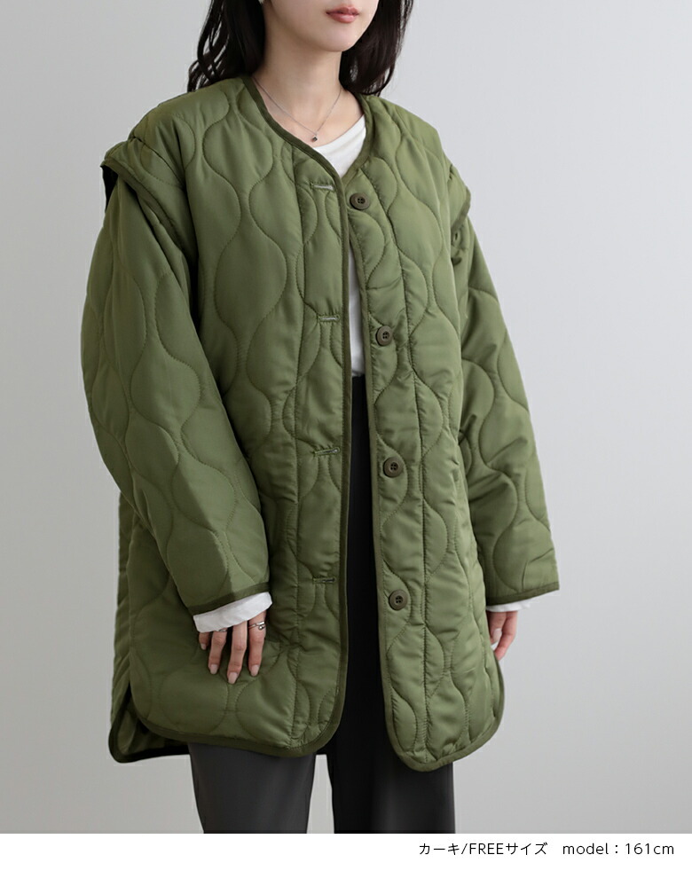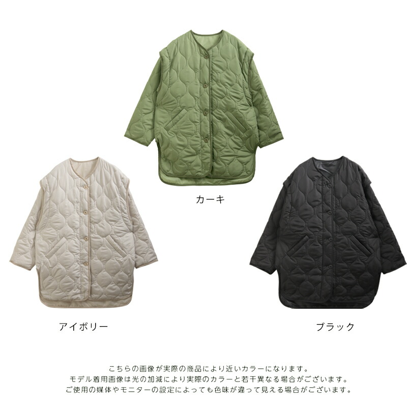 2way中綿キルティングジャケット 中 レディースファッション 豊富な品揃え アイボリー カーキ ブラック
