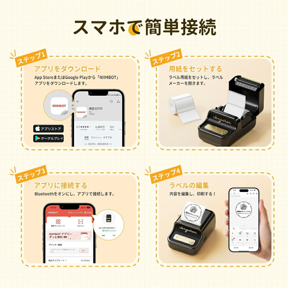 App StoreまたはGoogle Playから「NIIMBOT」アプリを無料ダウンロード!