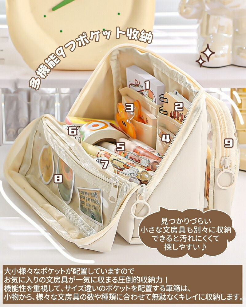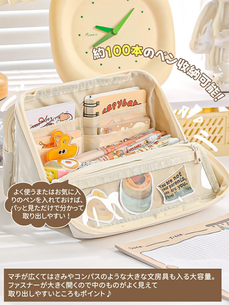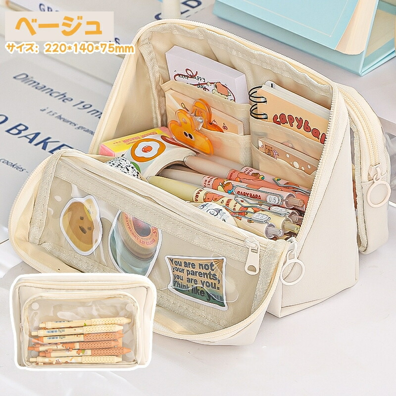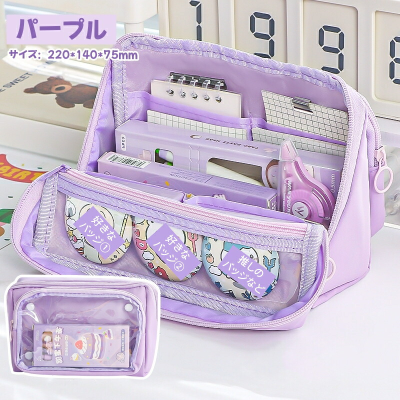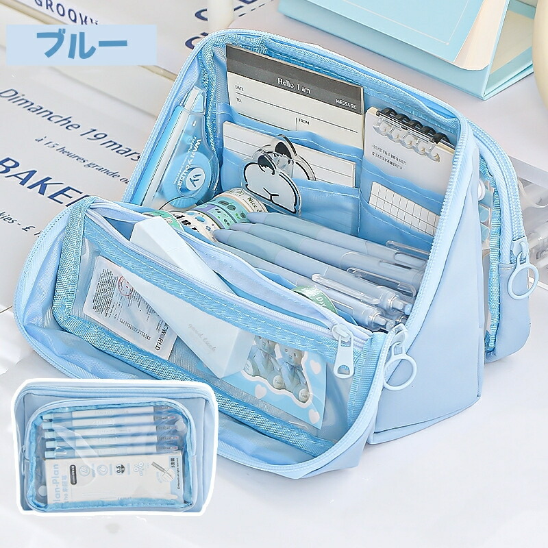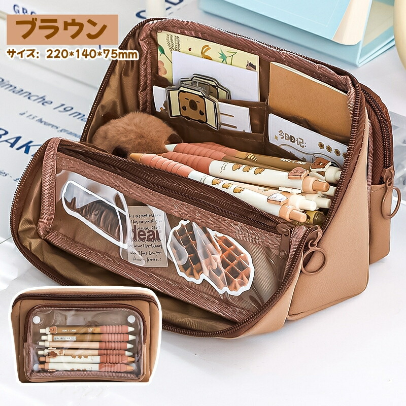 ペンケース 筆箱 ポーチ 透明 大容量 日用品雑貨 文房具 手芸 人気 ブラック ベージュ パープル ピンク ブルー
