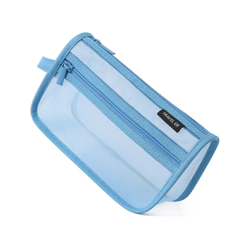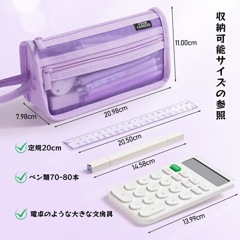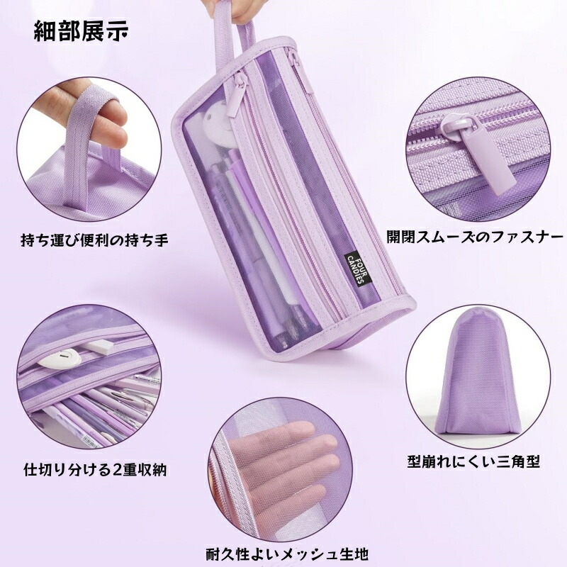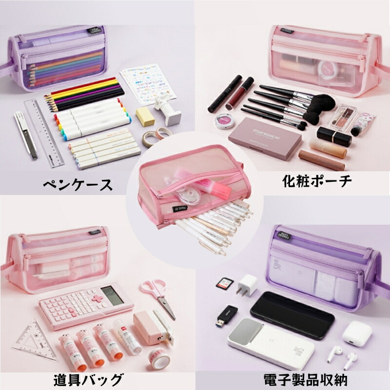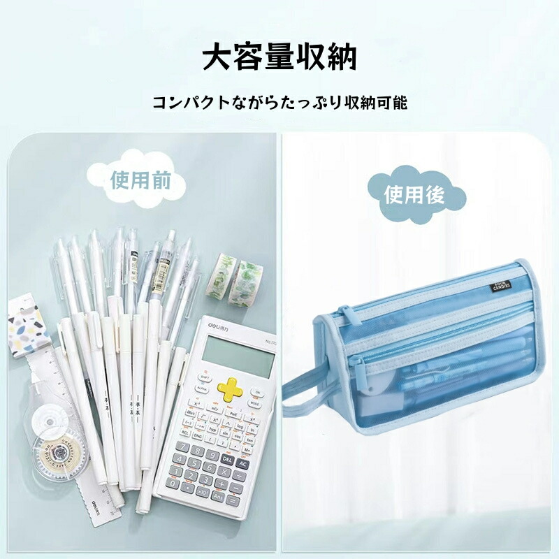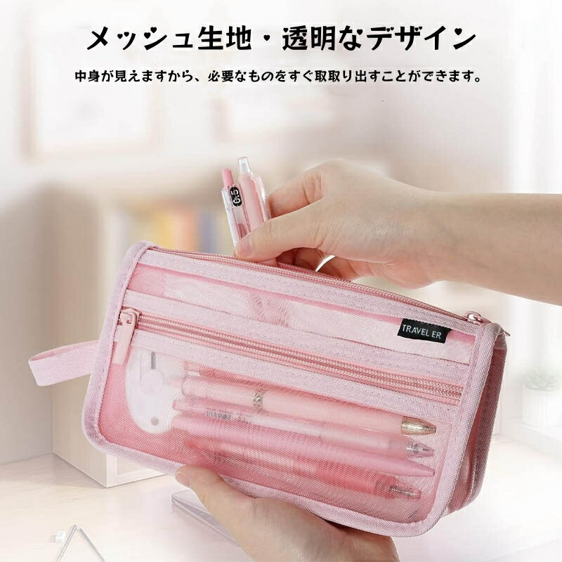 ペンケース 筆箱 透明 メッシュポーチ 日用品雑貨 文房具 手芸 人気 ホワイト ブラック ブルー パープル