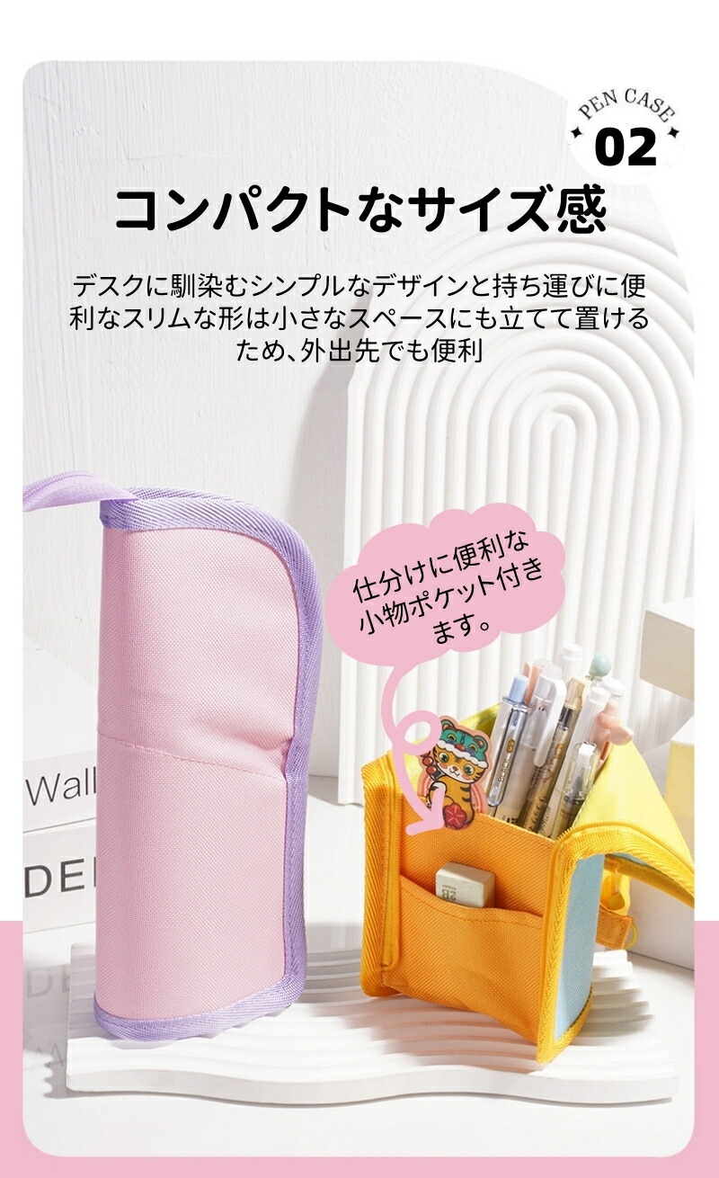 筆箱 ペンケース ペンスタンド 立つ 文房具 事務用品 筆記具 ペンケース 人気 イエロー ピンク ブルー ネイビー パープル