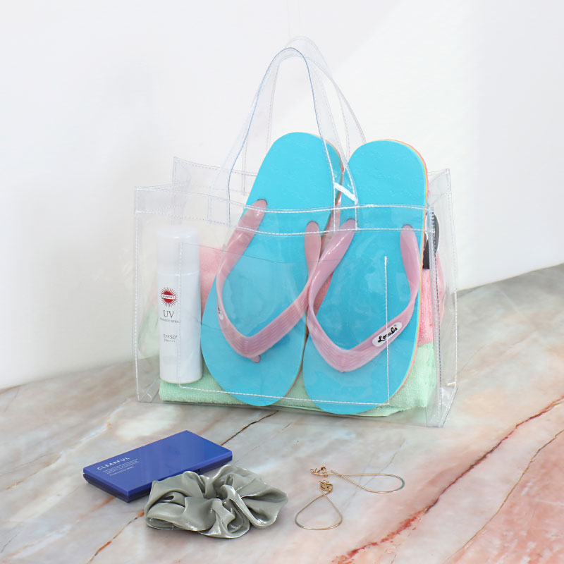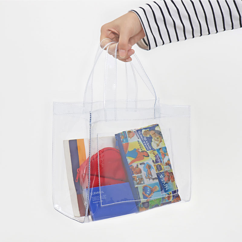 クリアバッグ トートバッグ ビニールバッグ Sサイズ B5サイズ対応 ポケット付き 透明 クリア プールバッグ ツアーバック ビニールバック 手提げ 推し活 痛バ ビジネス スパバッグ 野球 痛バッグ