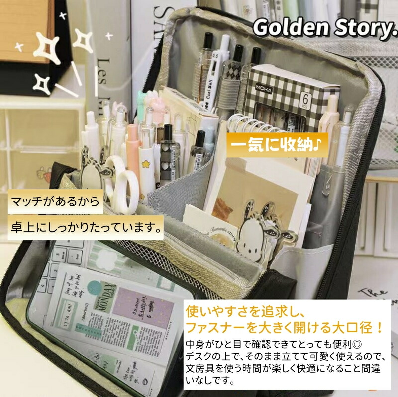 筆箱 ペンケース 大容量 立てる 手帳 日用品雑貨 文房具 手芸 特集 ベージュ ブラック ピンク パープル