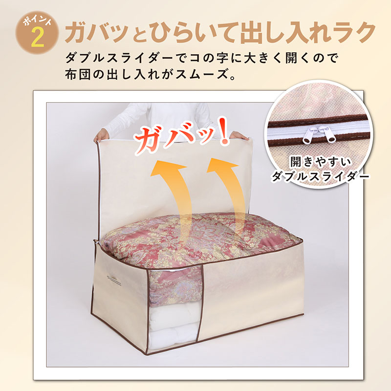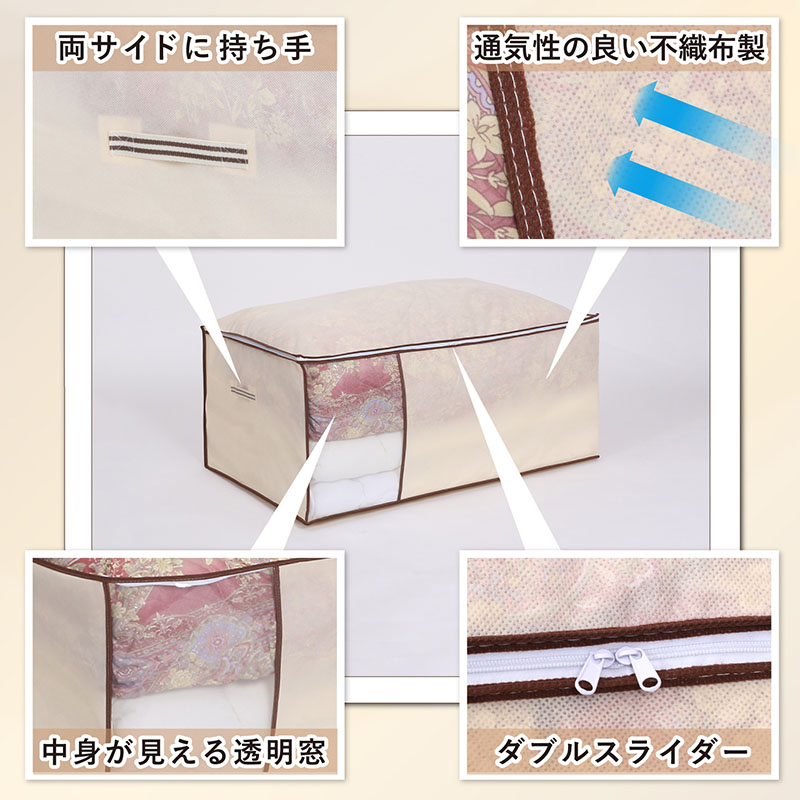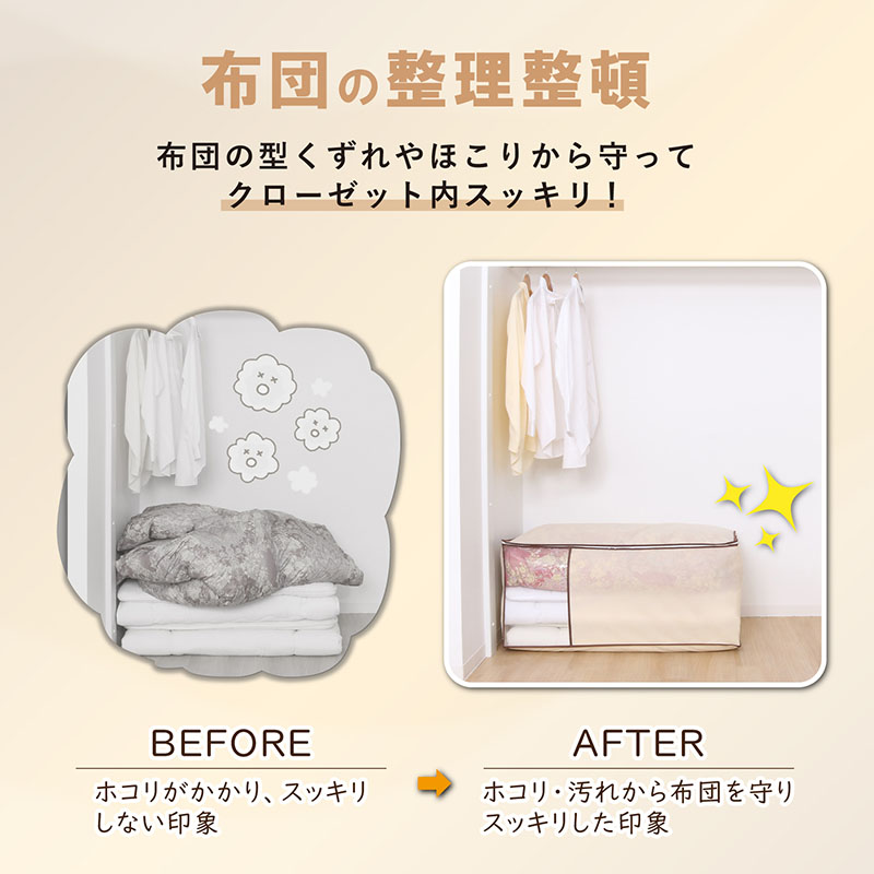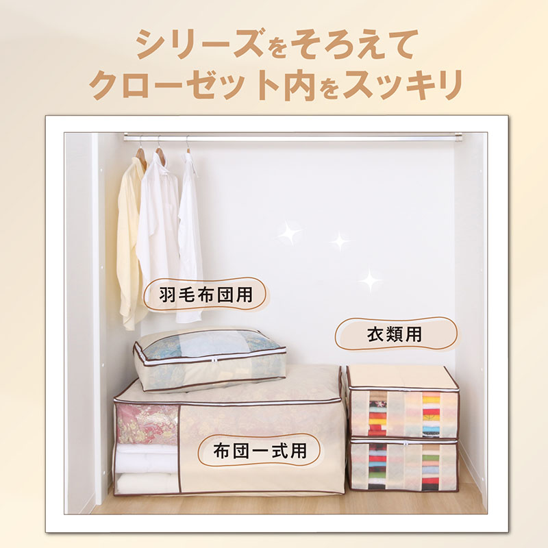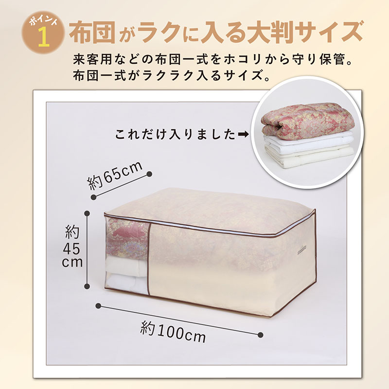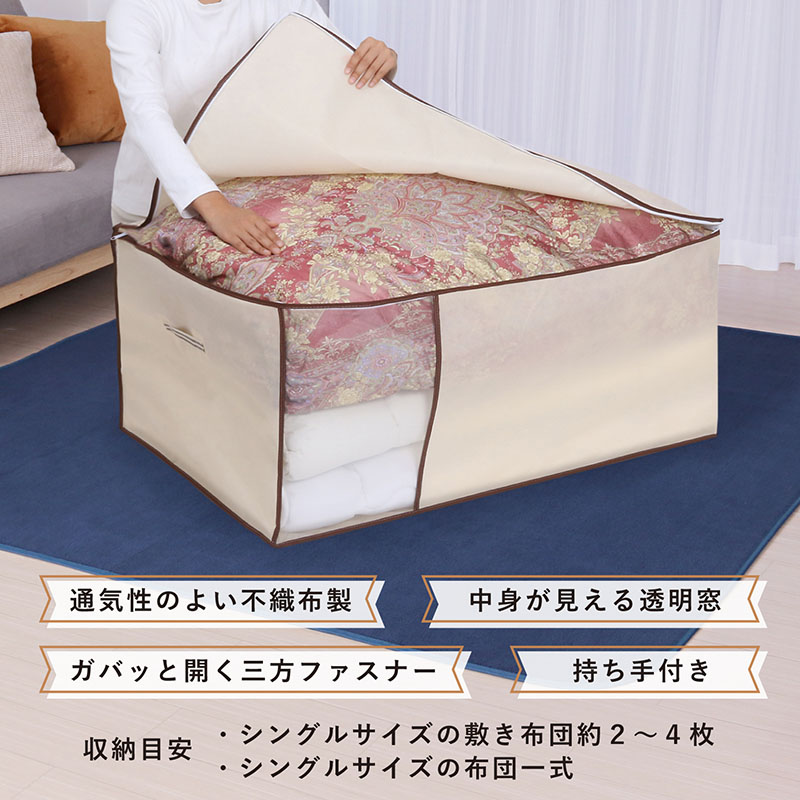 布団収納 布団収納袋 収納袋 収納ケース 収納ボックス ベージュ 布団一式 敷き布団 掛け布団 シングル ホコリよけ 汚れ防止 透明窓 持ち手付き 積み重ね 縦置き 横置き クローゼット 折りたたみ