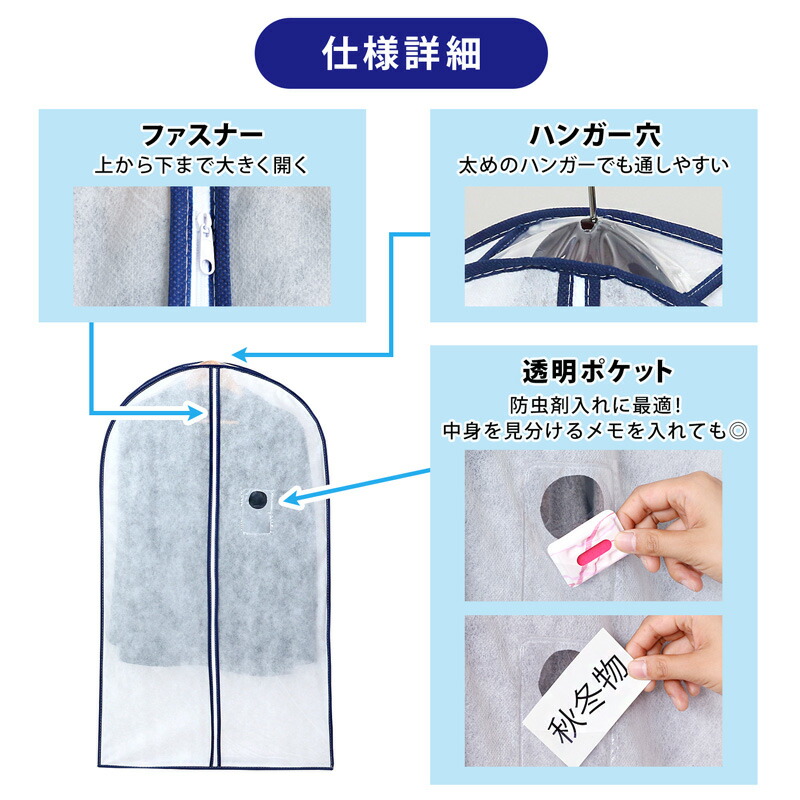 衣類カバー 洋服カバー ホワイト 5枚