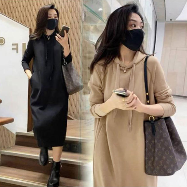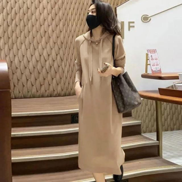 ロング丈 ワンピース パーカーワンピー レディースファッション 超目玉商品 ブラック ベージュ M L XL 2XL 3XL