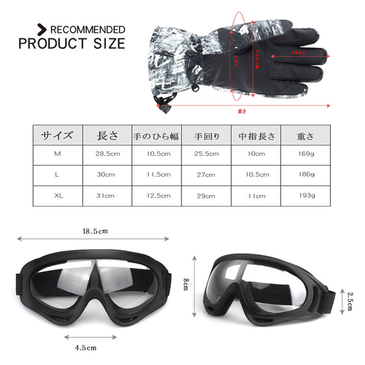 スキーグローブ ゴーグル 2点セット スポーツ アウトドア 超目玉商品 NO1 NO2 NO3 NO4 NO5 NO6 M L XL