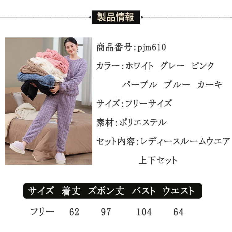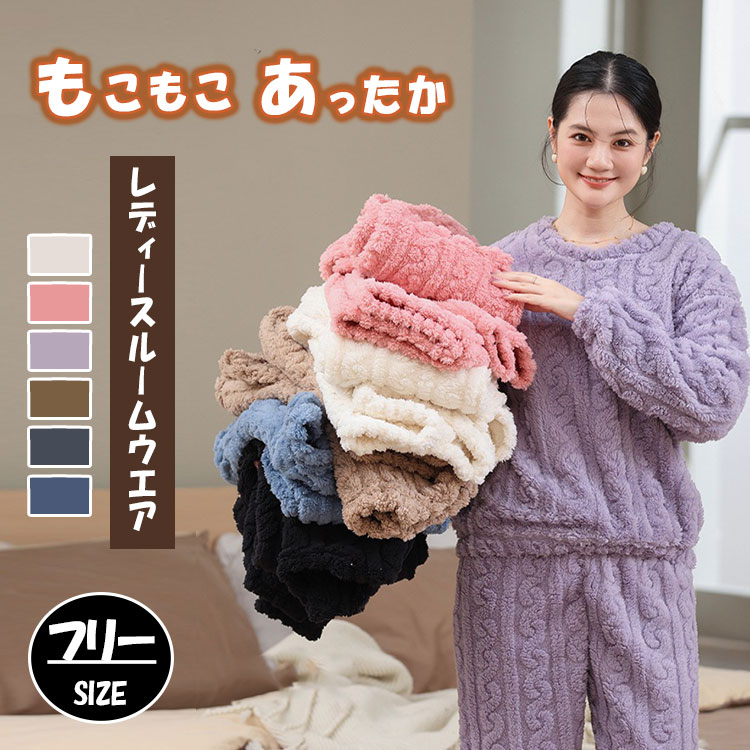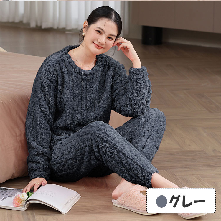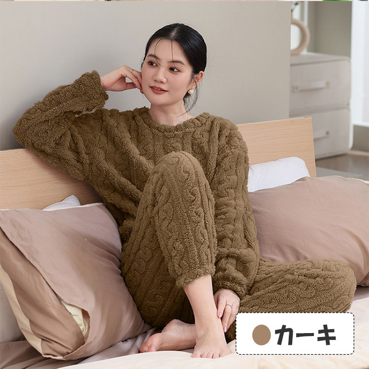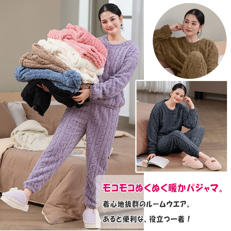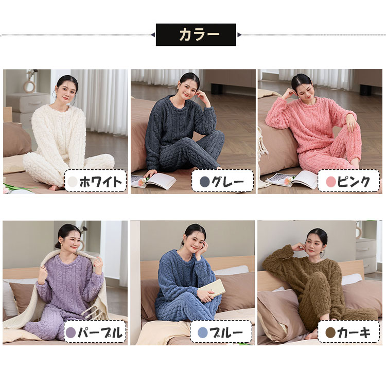 ルームウエア モコモコ 暖かパジャマ インナー 下着 ナイトウエア 通販 ホワイト グレー ピンク パープル ブルー カーキ