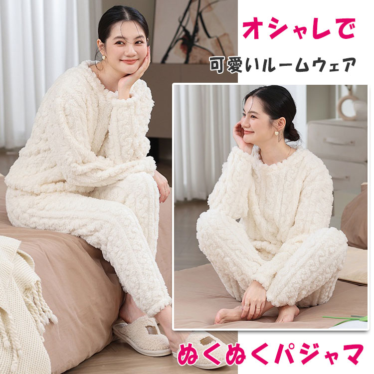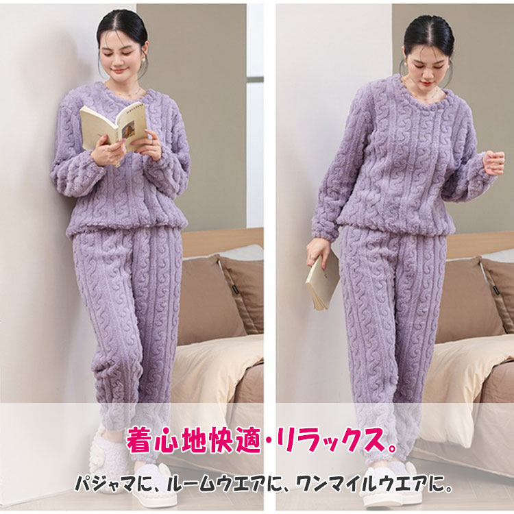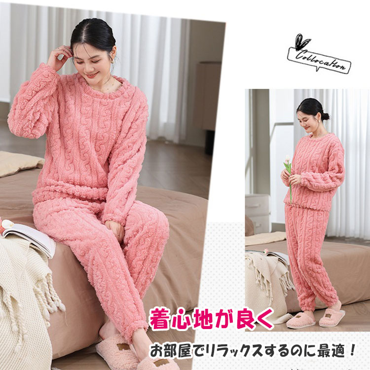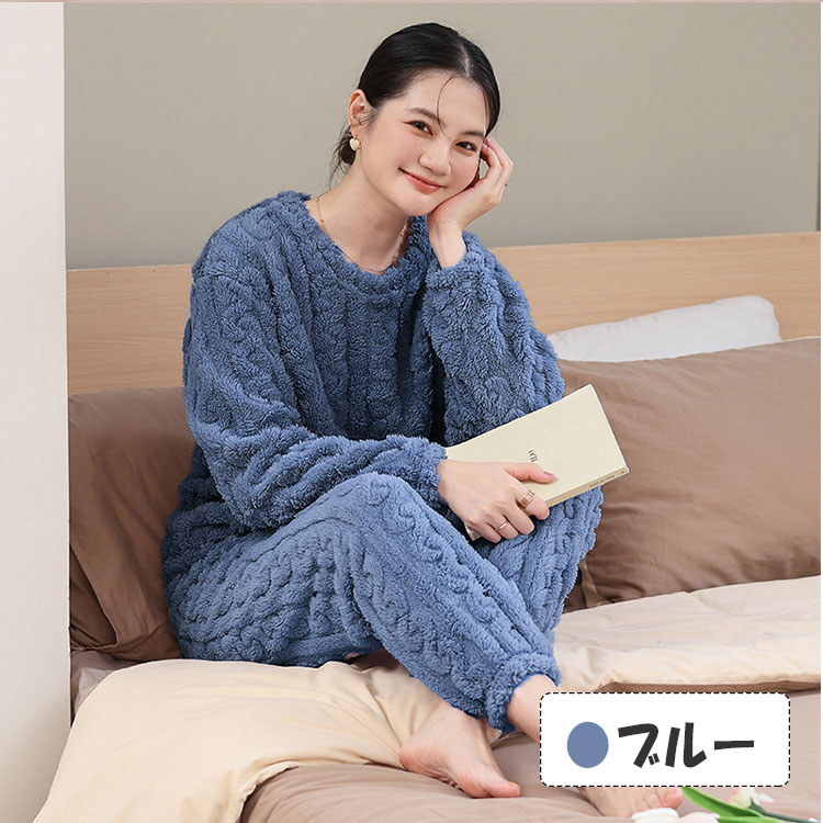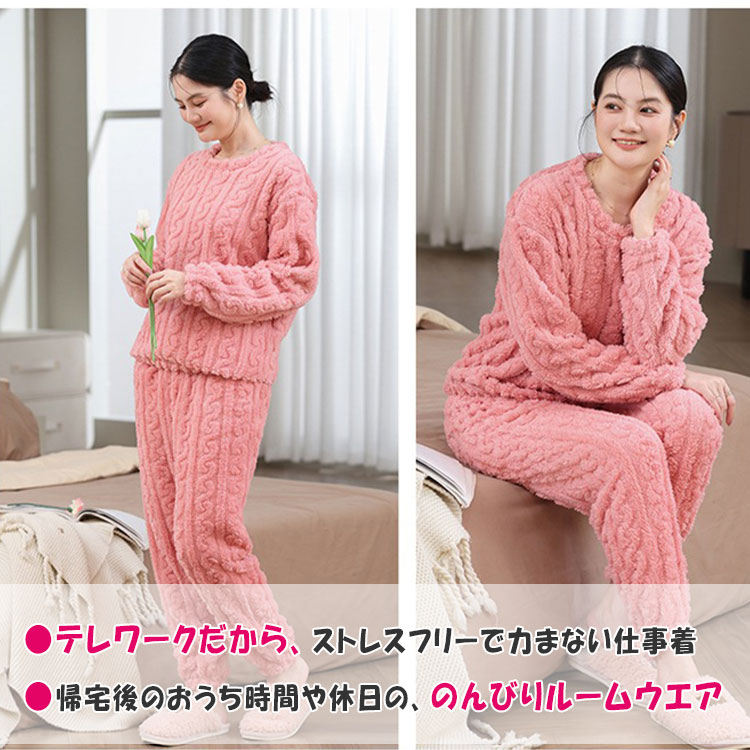 ルームウエア モコモコ 暖かパジャマ レディース 暖かルームウエア 秋冬 厚手 あったか 保温 上下セット 長袖 長ズボン 冷え防止 可愛い 優しい着心地 優しい手触り ぬくぬく暖か部屋着 オシャレ