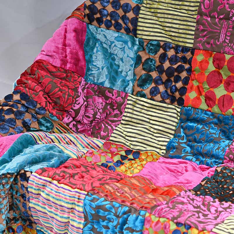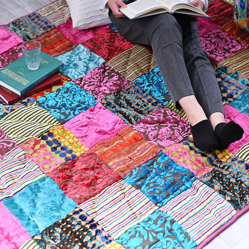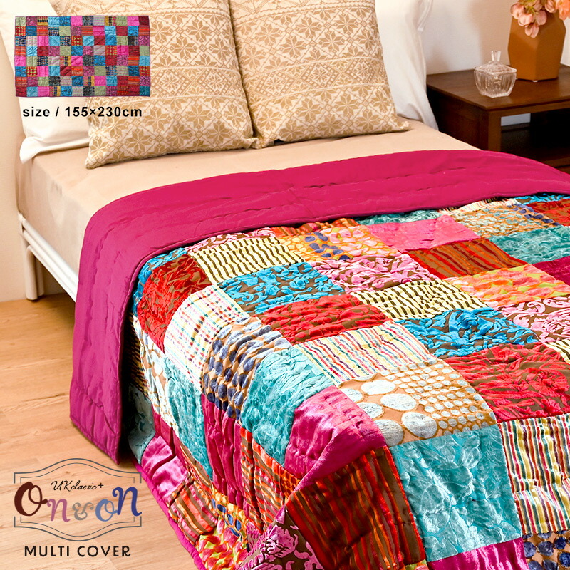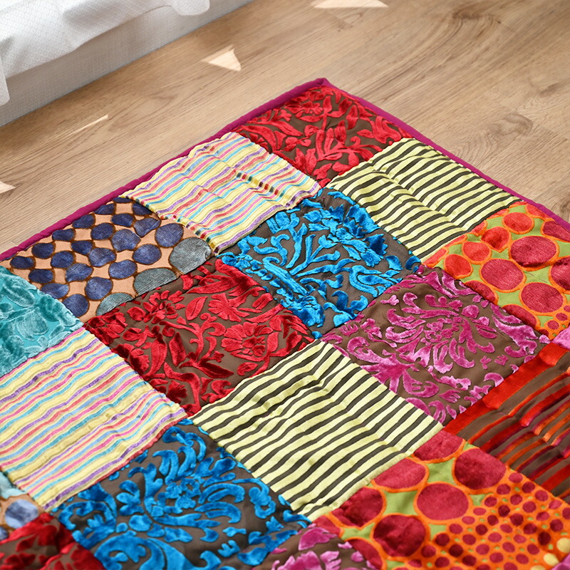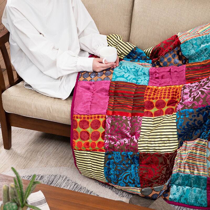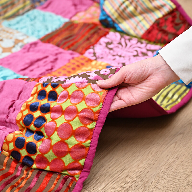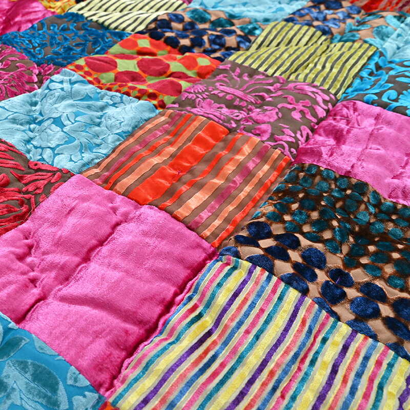 マルチカバー パッチワーク マット 155×230cm ベッドカバー ブランケット ベルベット on&on エレガント ベット 寝具カバー マルチカラー おしゃれ ZDL800ML15 ラグ