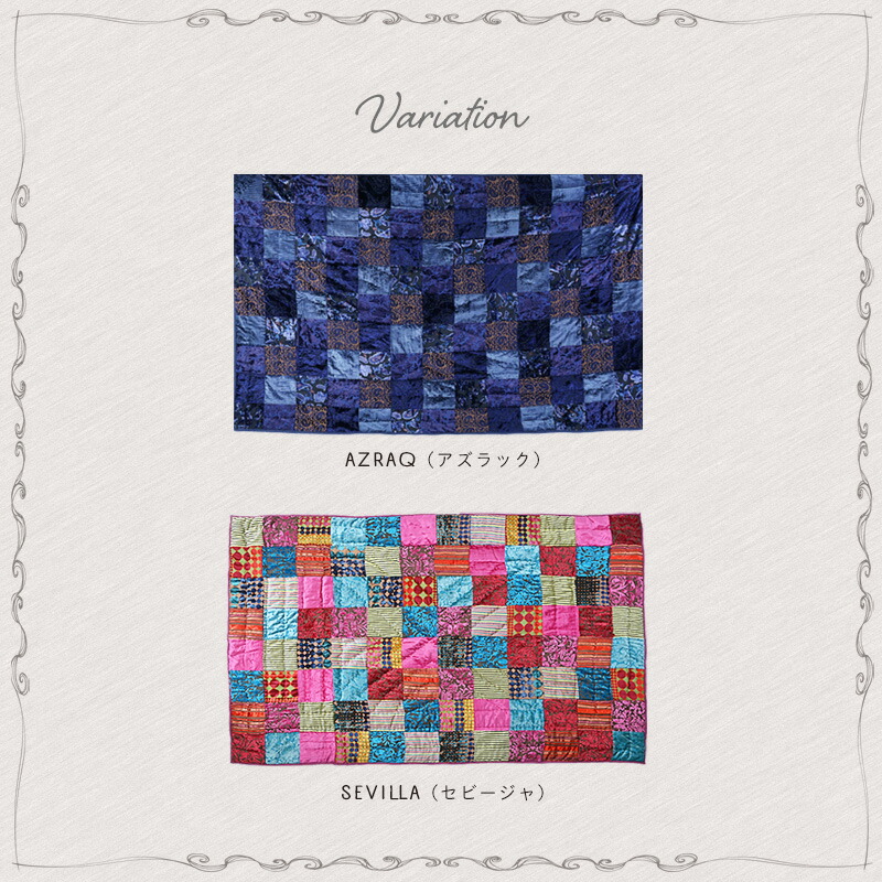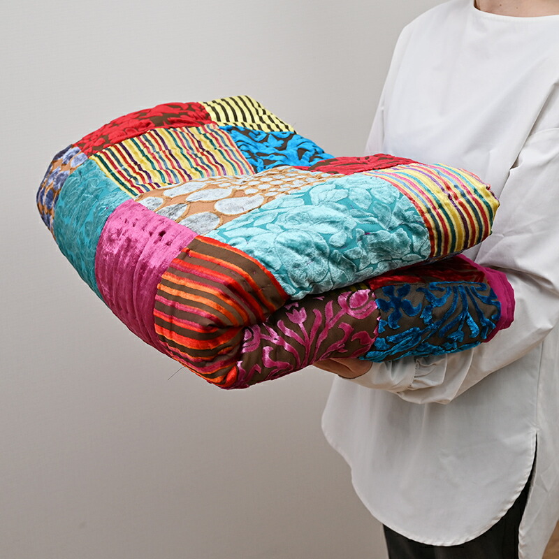 1点1点ハンドメイドによって作られたマルチカバーは配色も生地の配置も同じものは2つとありません。