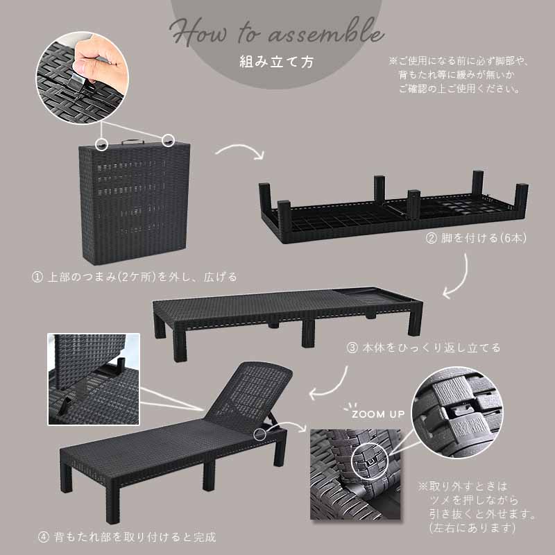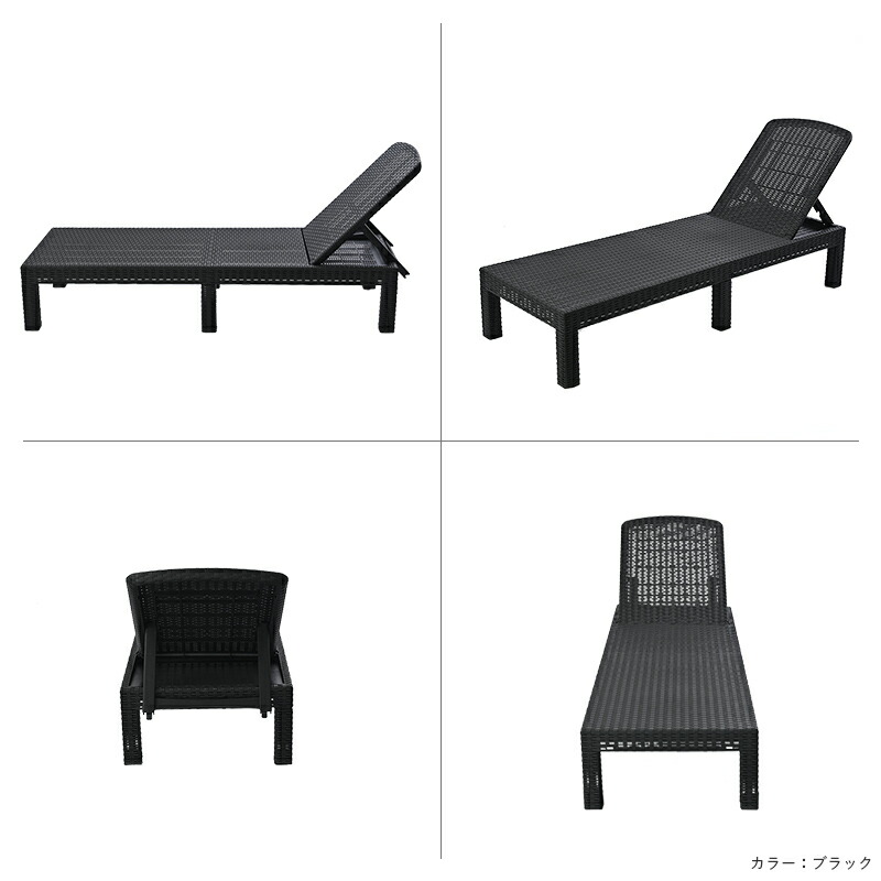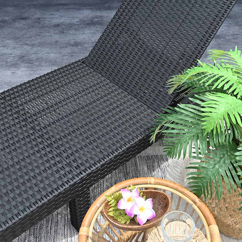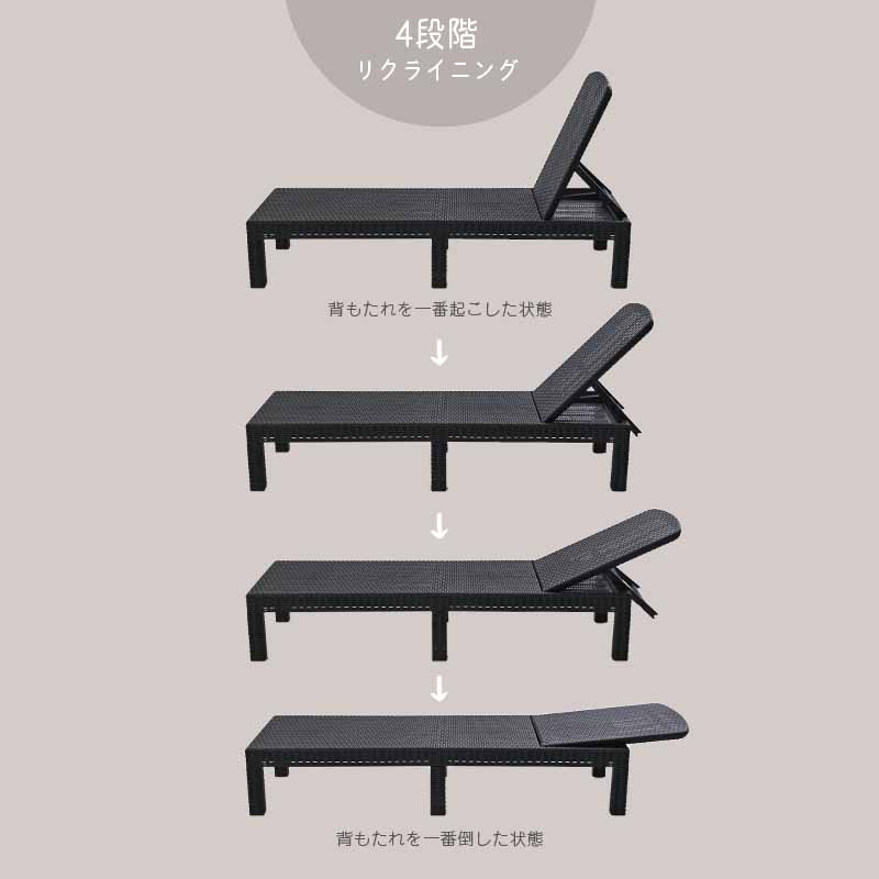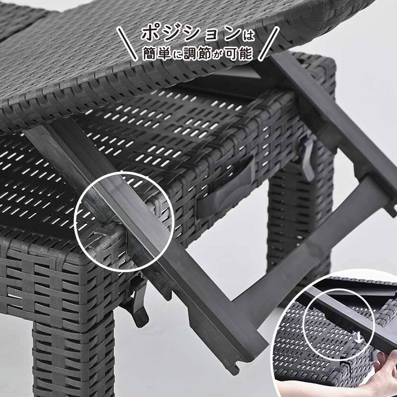 サマーベッド ガーデンベッド デッキチェア リクライニング ガーデンチェア デイベッド 屋外 1脚 アウトドア 持ち運び楽々 サンラウンジャー プールサイド 庭 テラス グレー ラタン調 ガーデン 黒