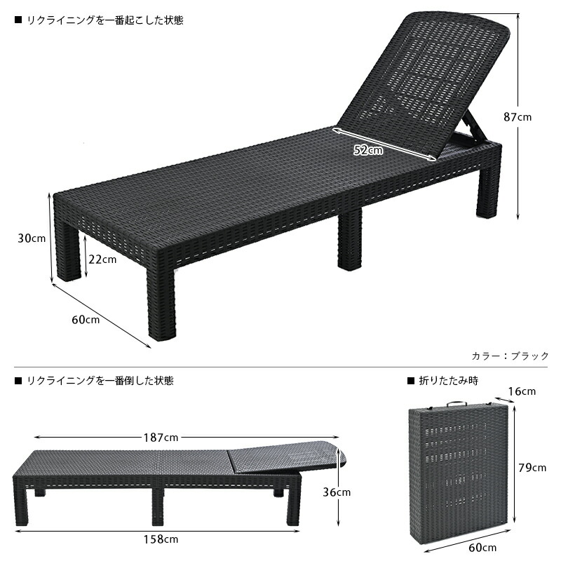 外寸:(幅)60×(奥行)187×(高)36~87×(座面高)30cm