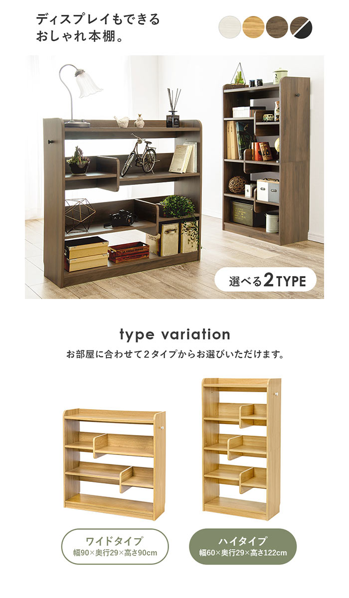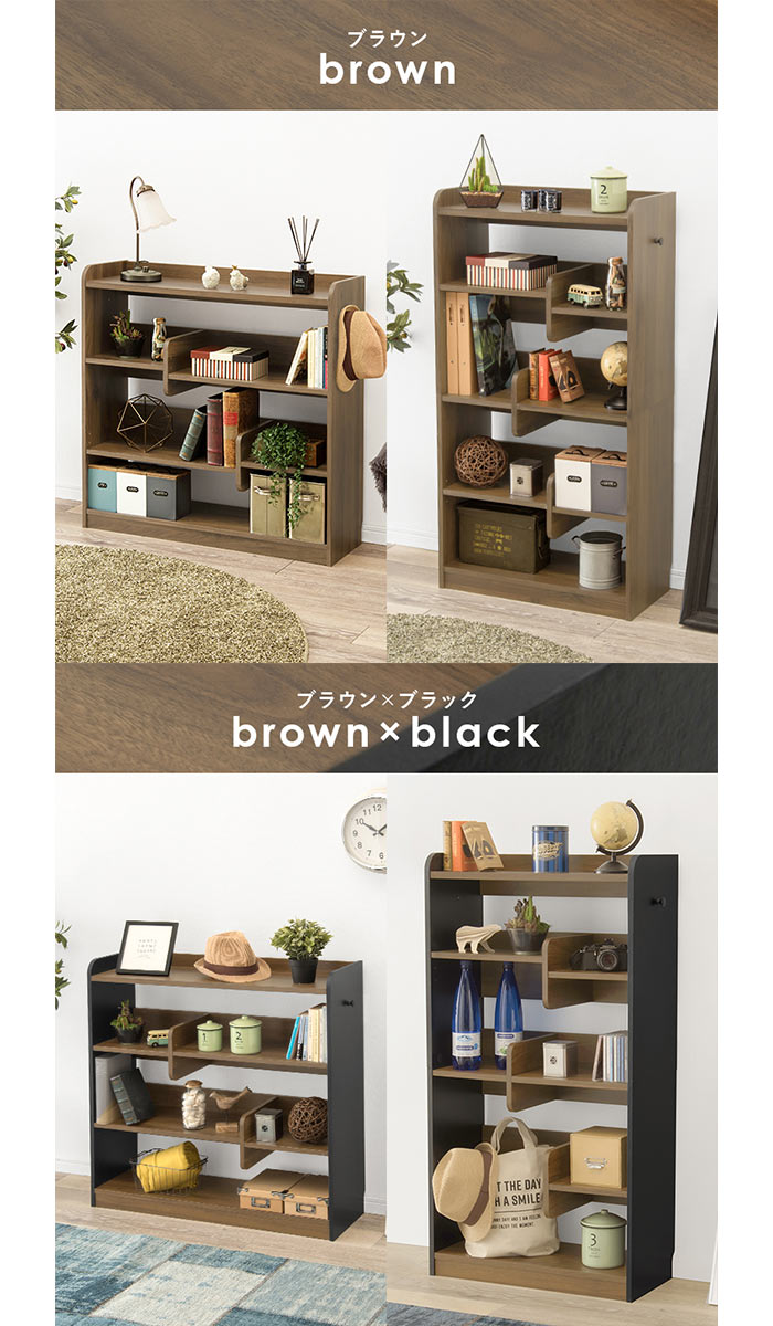 ディスプレイラック ハイタイプ 本棚 ハイタイプ/ブラウン×ブラック ハイタイプ/ブラウン ハイタイプ/ナチュラル ハイタイプ/ホワイトウォッシュ