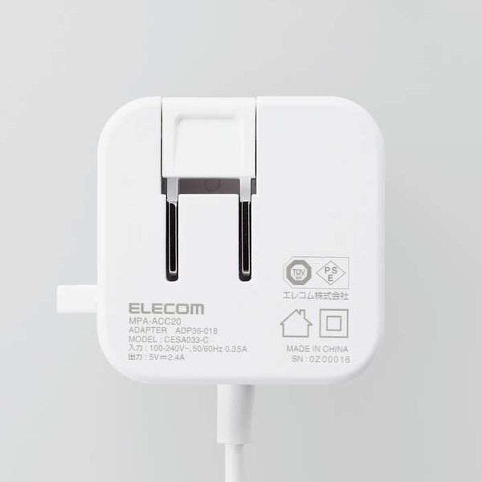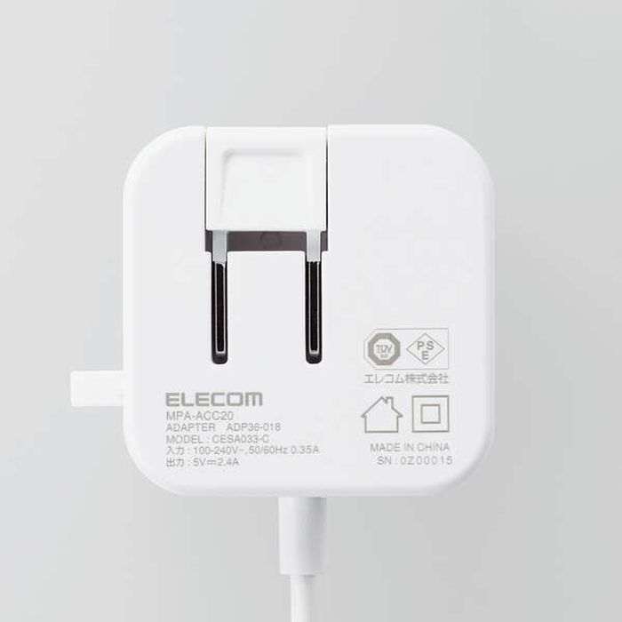 AC充電器 2.4A 12W USB ブラック ホワイトフェイス ホワイト