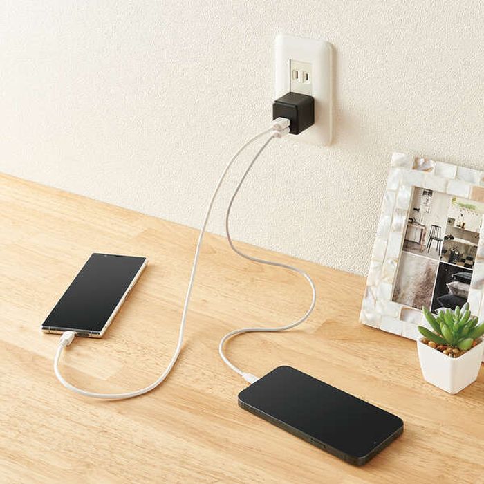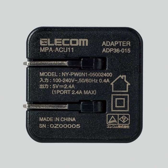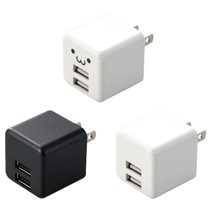 AC充電器 2.4A 12W USB ブラック ホワイトフェイス ホワイト