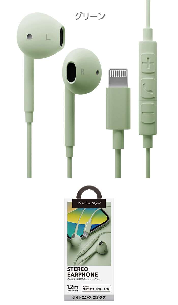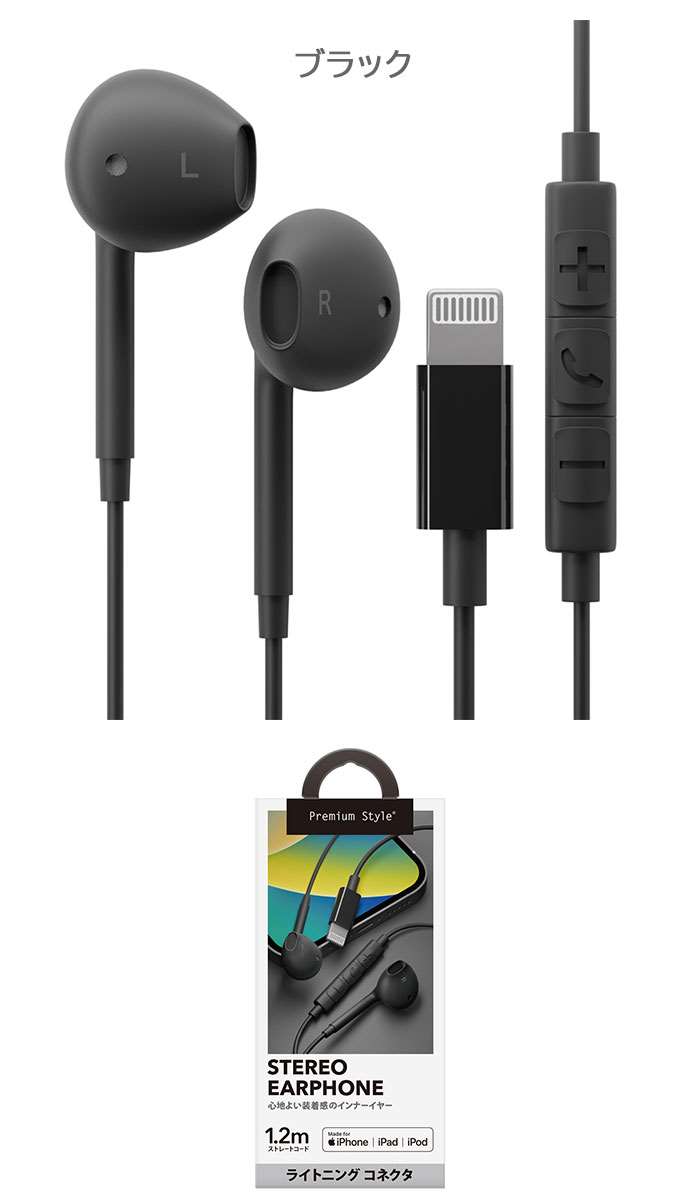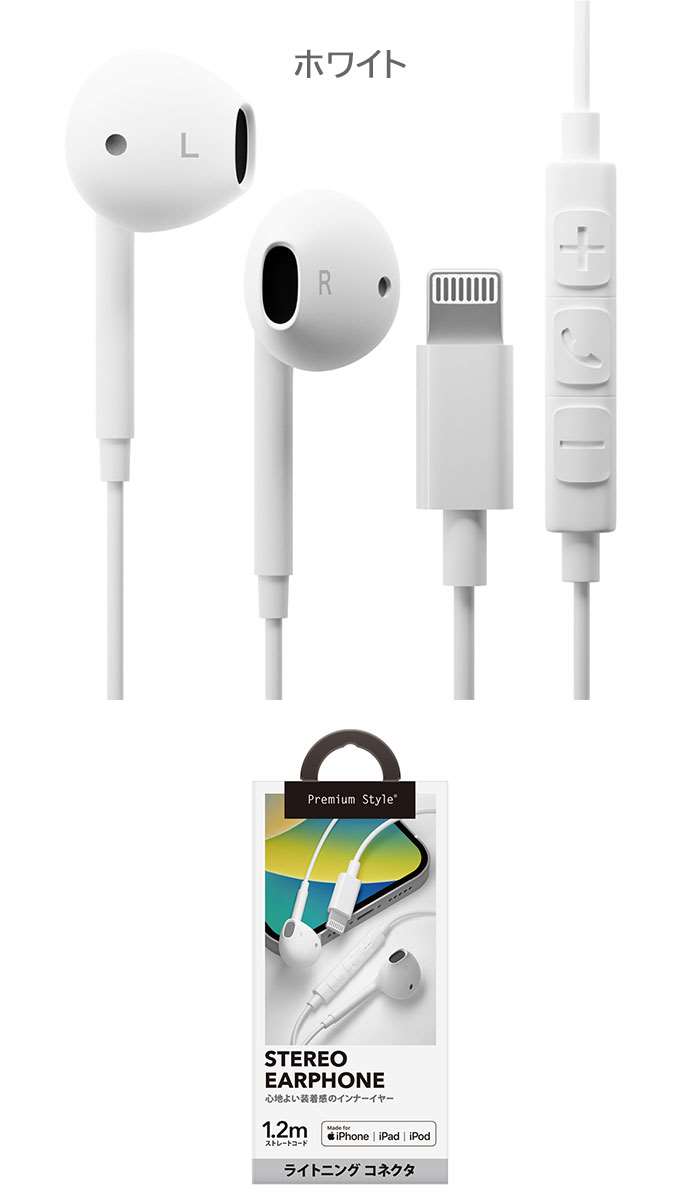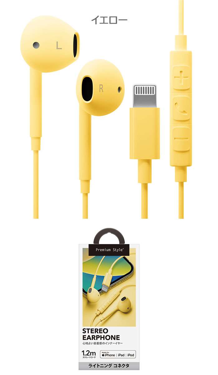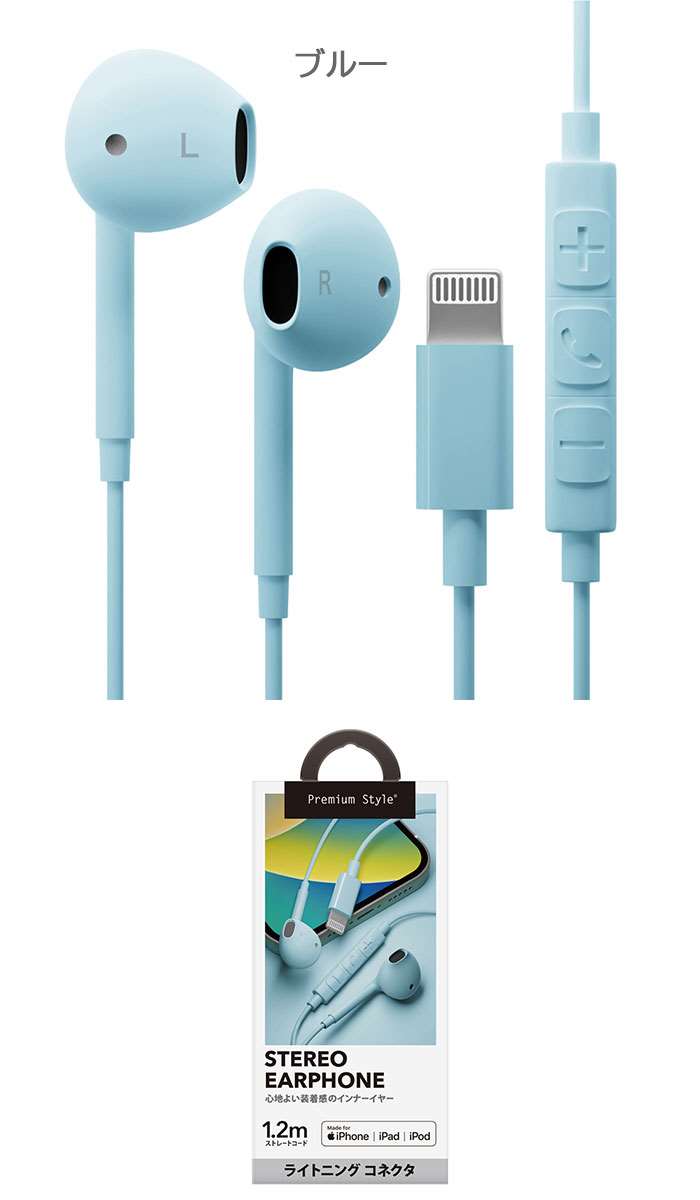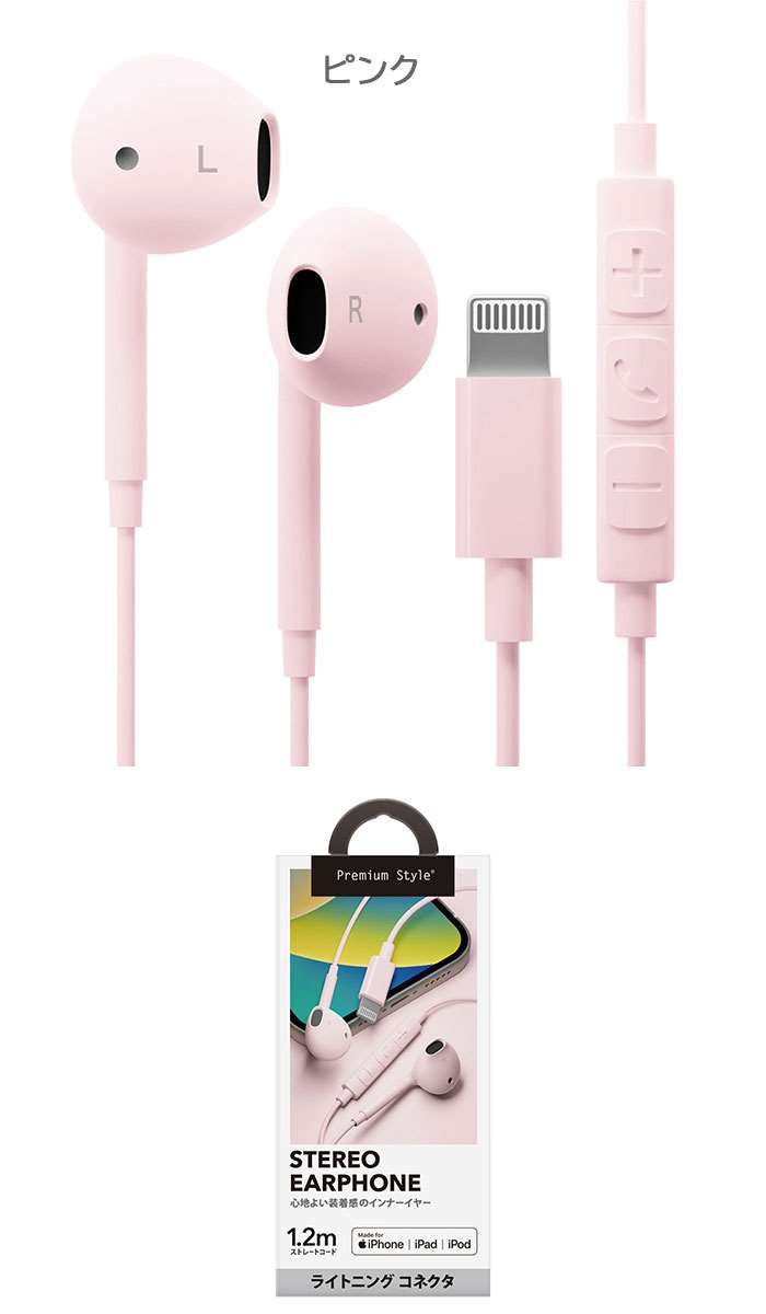 Lightningコネクタ ステレオイ ブラック ホワイト ブルー ピンク ベージュ グリーン イエロー