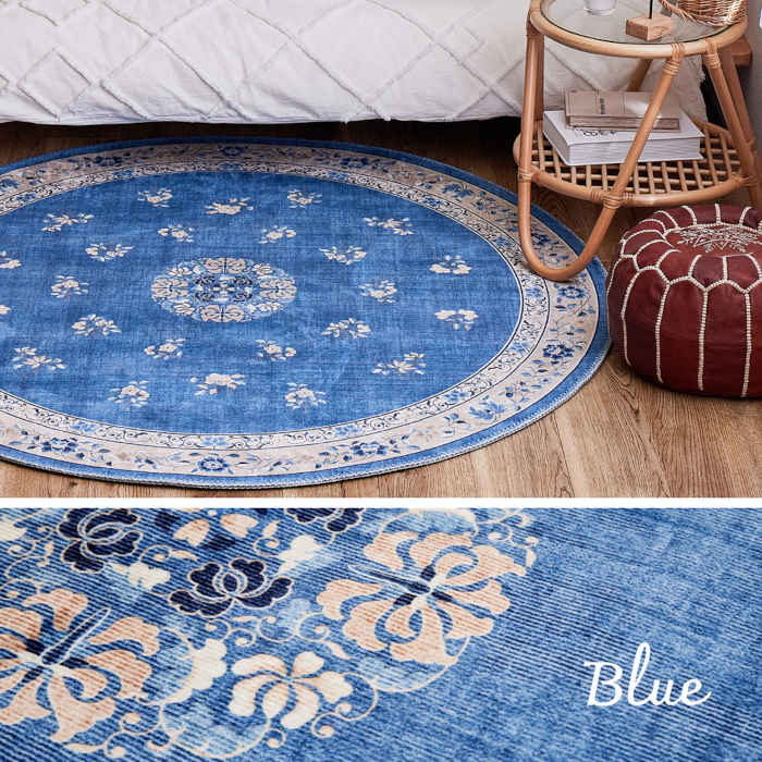 ラグ 転写プリントラグ 約3畳 190 ブルー アイボリー ピンク