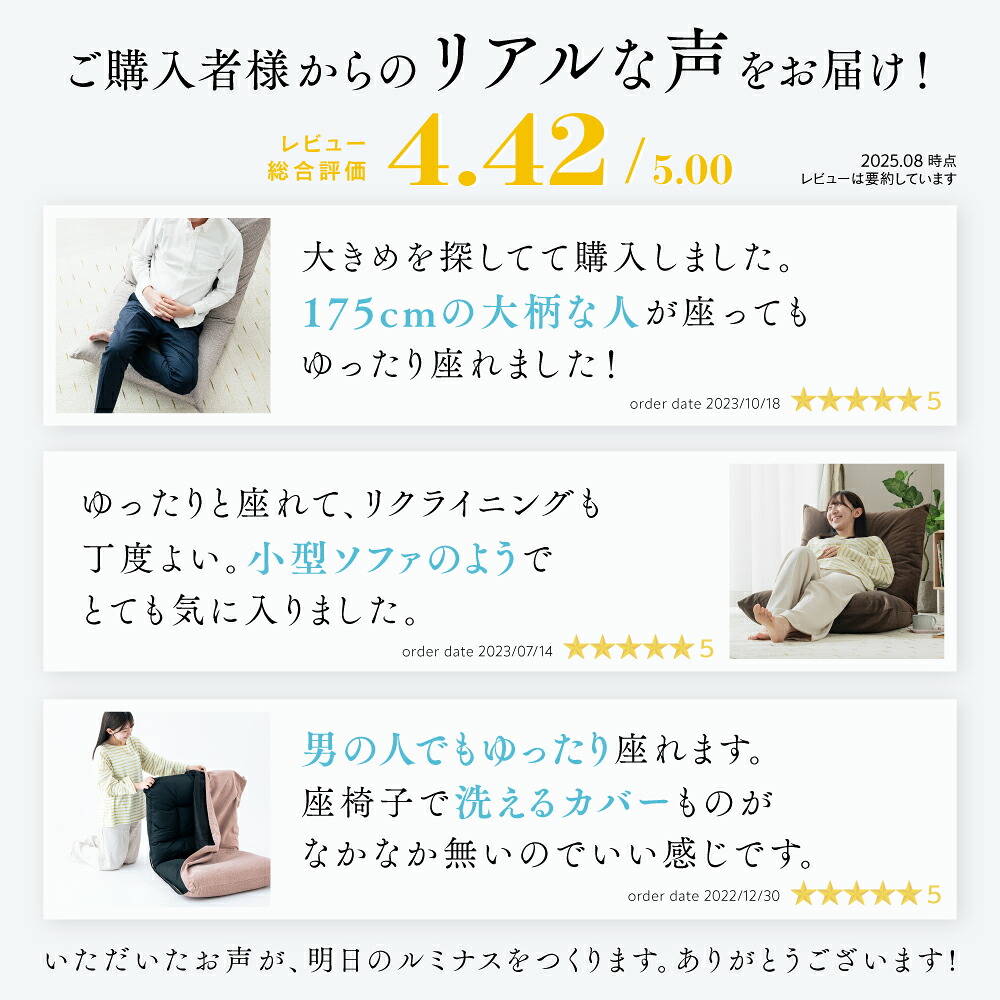 ルミナス 直営店 座椅子 カバー ハイ ベージュ グレー ピンク ダークブラウン