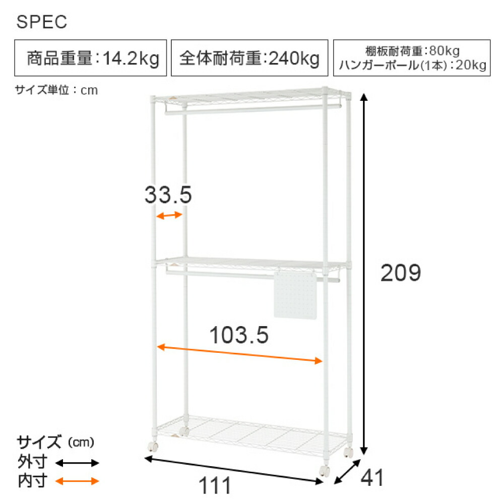 ルミナス ラテ 2段 ハンガーラック