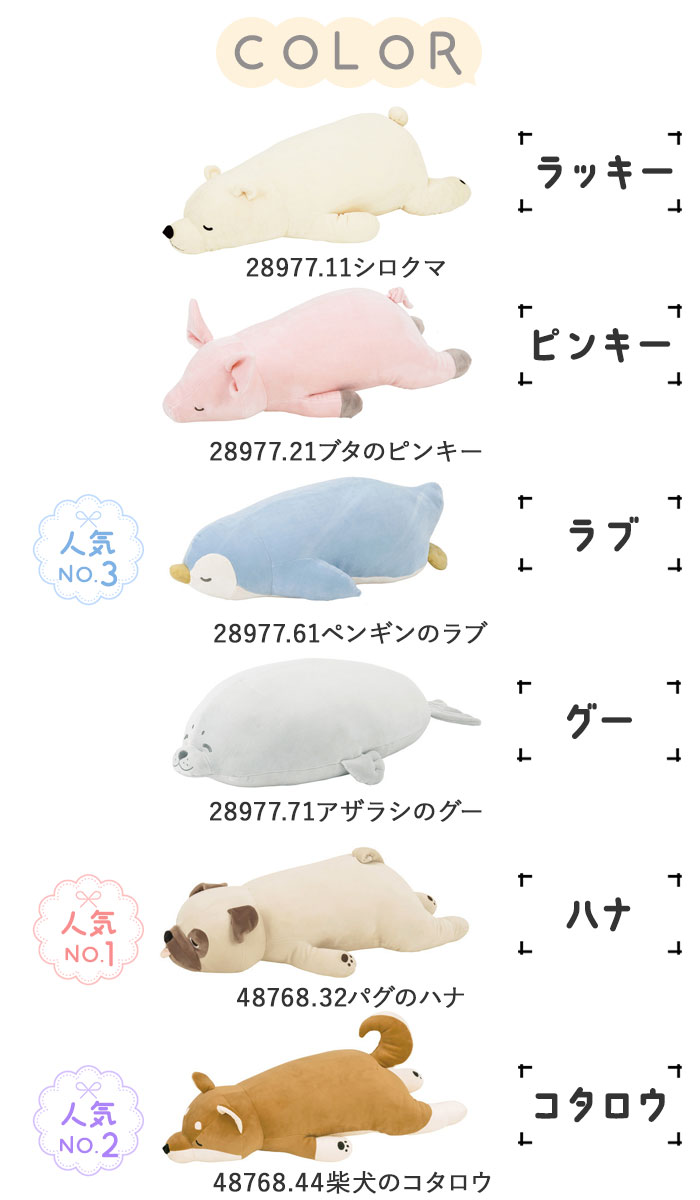 抱き枕 ぬいぐるみ 大きい 動物 好評 インテリア 寝具 収納 通販 28977.11シロクマ 28977.21ブタのピンキー 28977.61ペンギンのラブ 28977.71アザラシのグー 48768.32パグのハナ 48768.44柴犬のコタロウ 48768.72ハスキー犬 48768.73黒柴のコテツ 58201.10ミケネコのゆず 58208.33くるり 78210.31ぽんきち 78210.41こんた 78210.74ジョイ 88244-35.ウータン スナコ ココア チョコ ひなた マロン のんちゃん