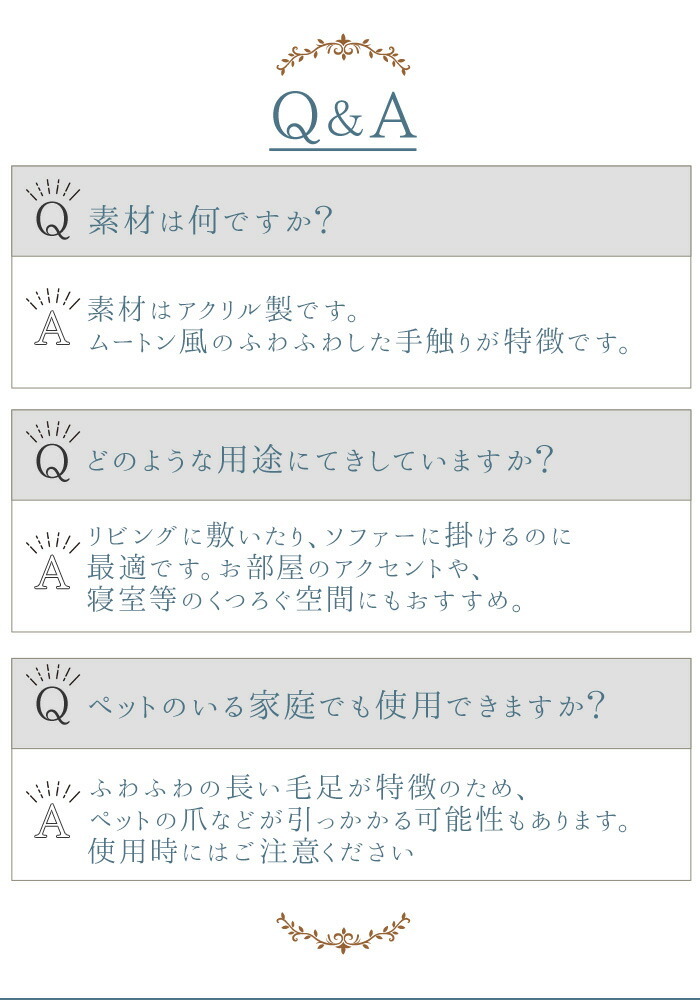 ・いつものリビングルームがラグジュアリーな空間に早変わり!ちょっとだけリッチな気分を味わいたい時にぴったりのムートン風ラグマット。