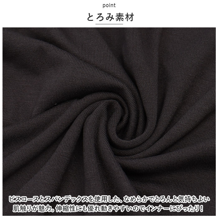 ・ビスコースとスパンデックスを使用した、なめらかでとろんと気持ちよい肌触りが魅力。伸縮性にも優れ動きやすいのでインナーにぴったり!
