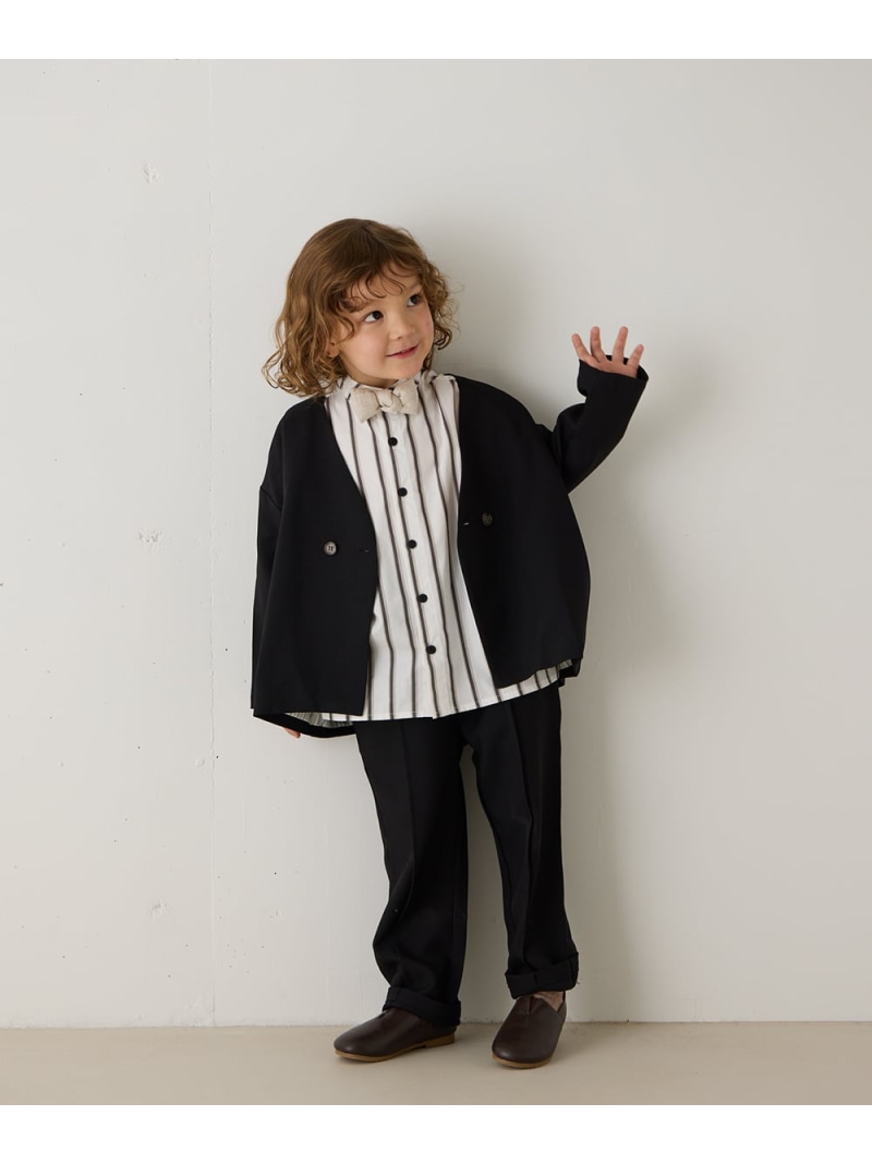 ノーカラージャケットセットアップ(裏地ストライプ)