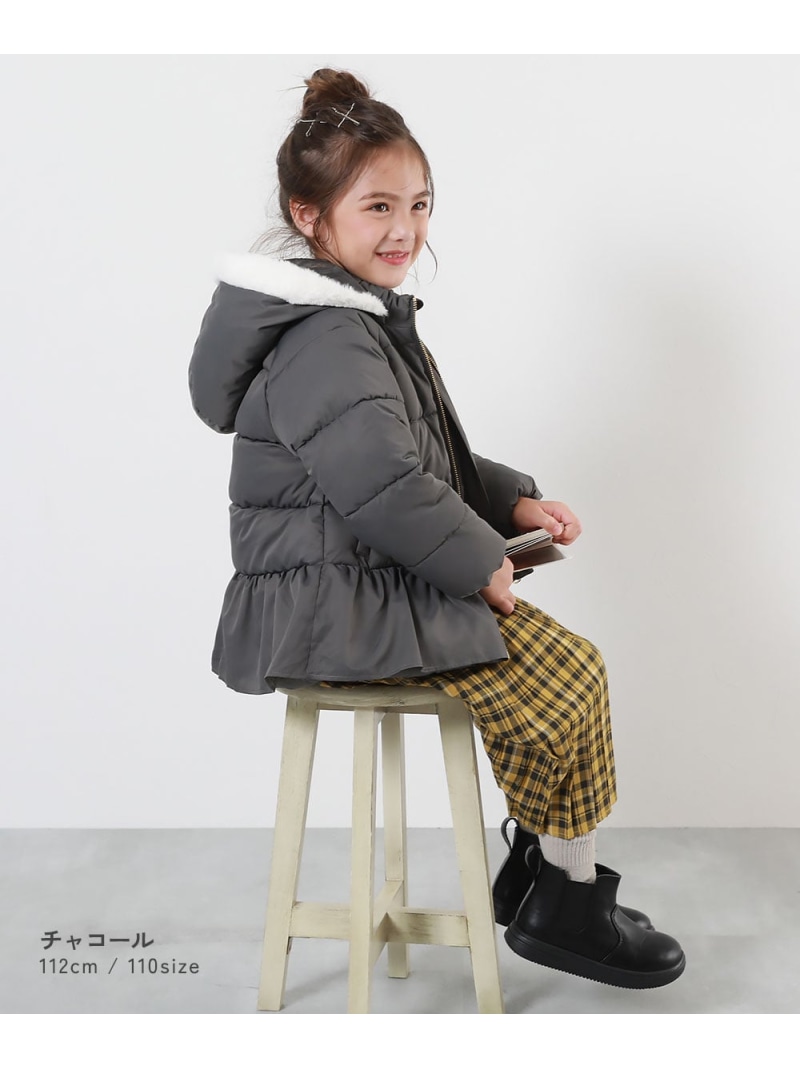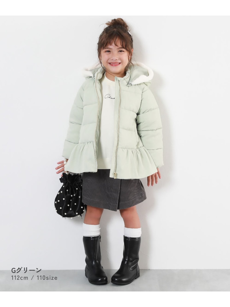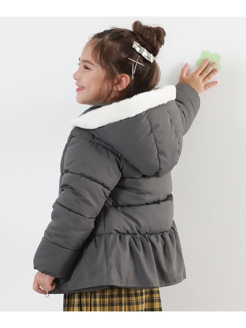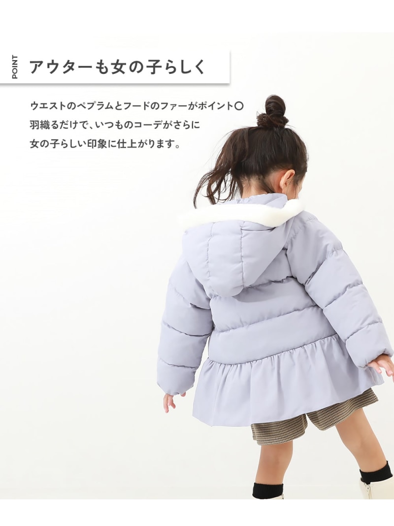 ウエストのペプラムとフードのファーがポイント〇