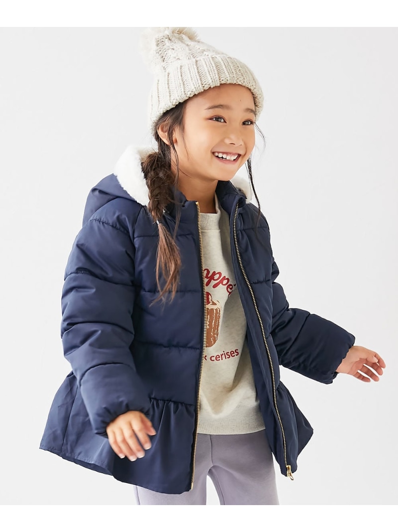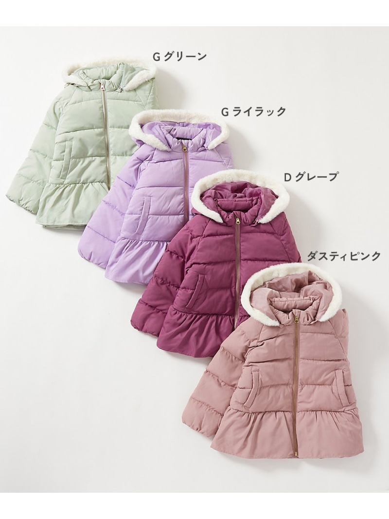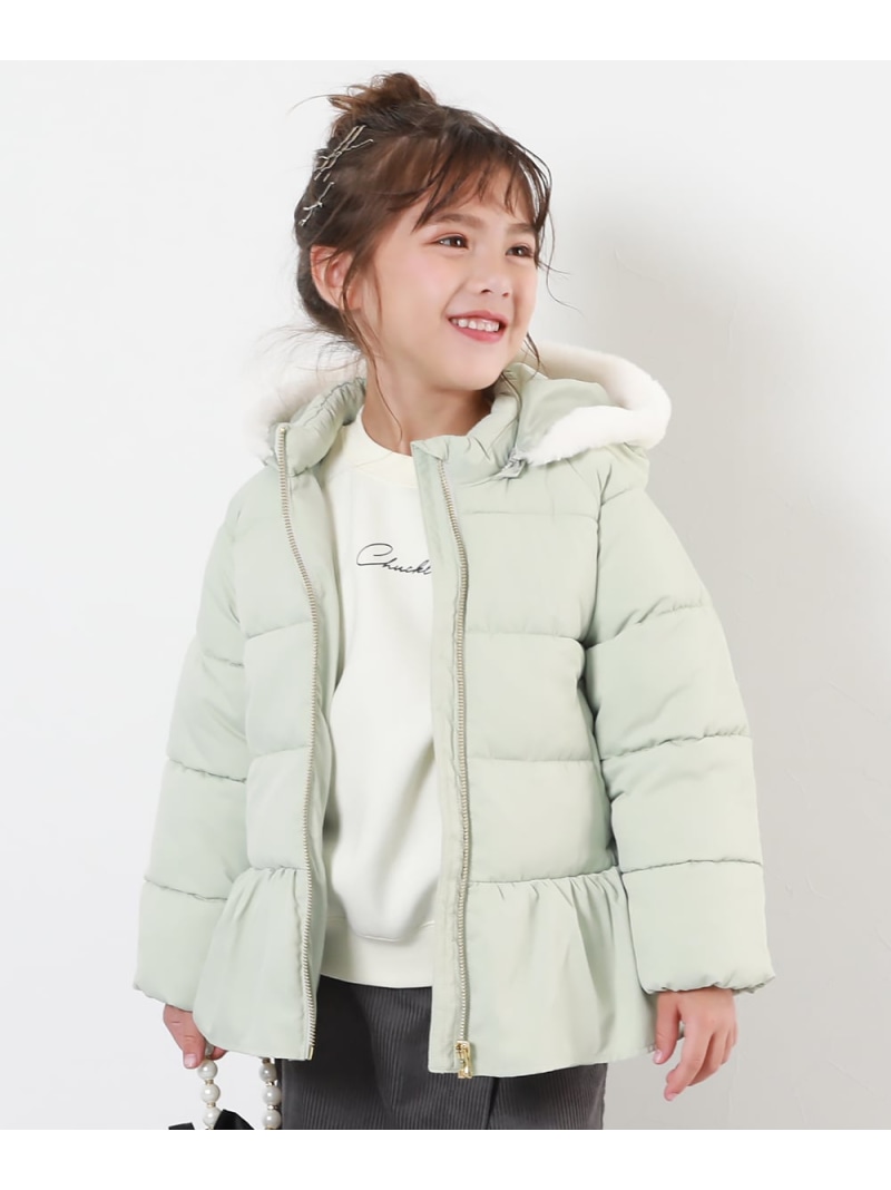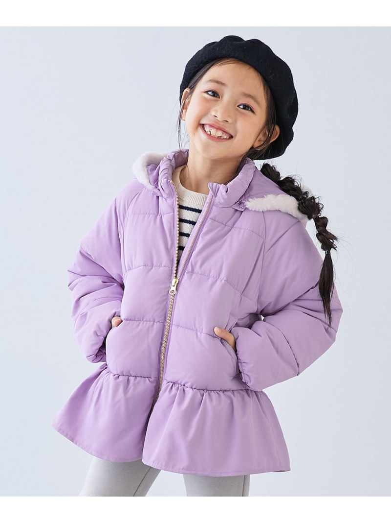 ウエストのペプラムとフードのファーがポイント〇