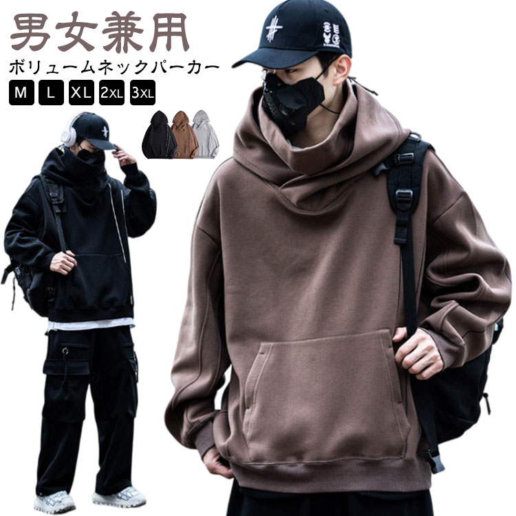 秋服 メンズ ボリュームネックパーカー トップス パーカー 続々登場 ブラウン グレー ブラック M L XL 2XL 3XL