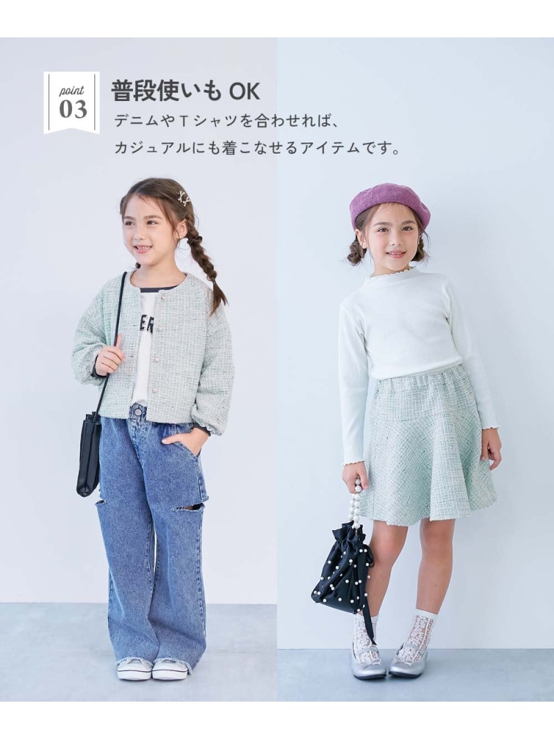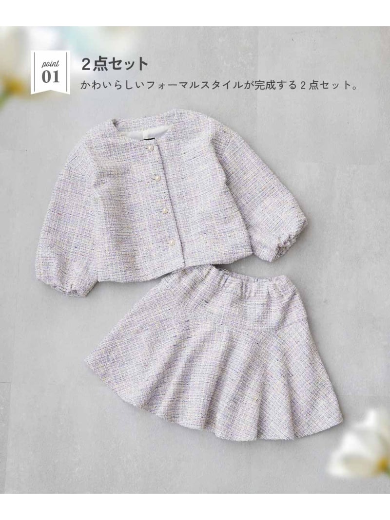 フォーマル ガールズノーカラー ツイードセットアップ 子供服 キッズ 女の子 26SS
