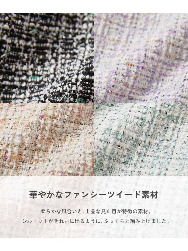 ツイード素材のトレンドスタイルが完成する2点セット。