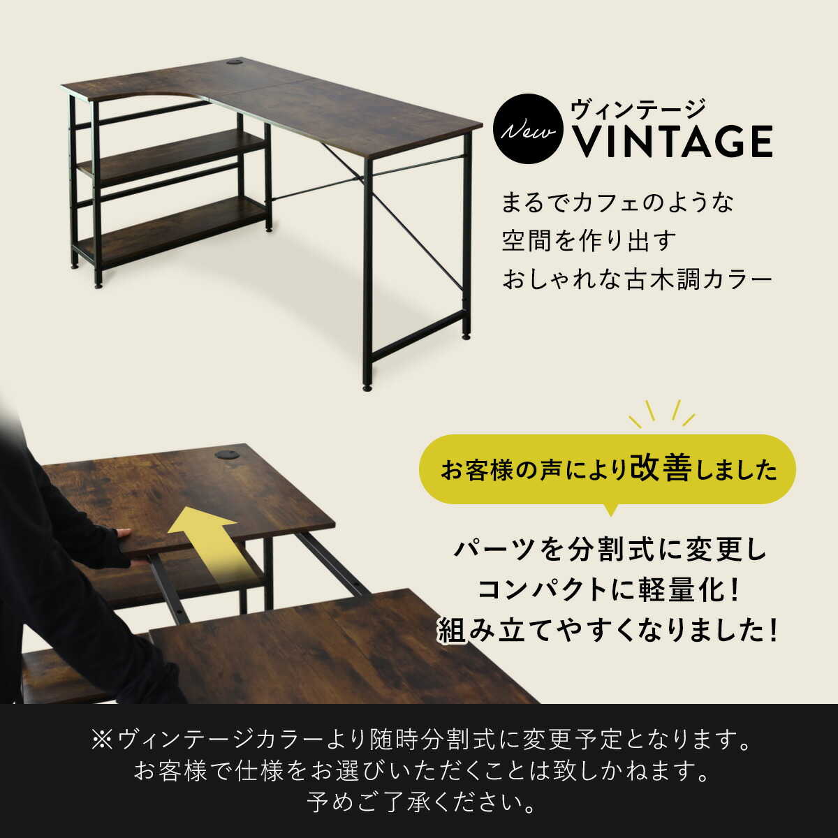 パソコンデスク デスク PCデスク L オーク ブラック ウォルナット ホワイトメープル ホワイト ヴィンテージ