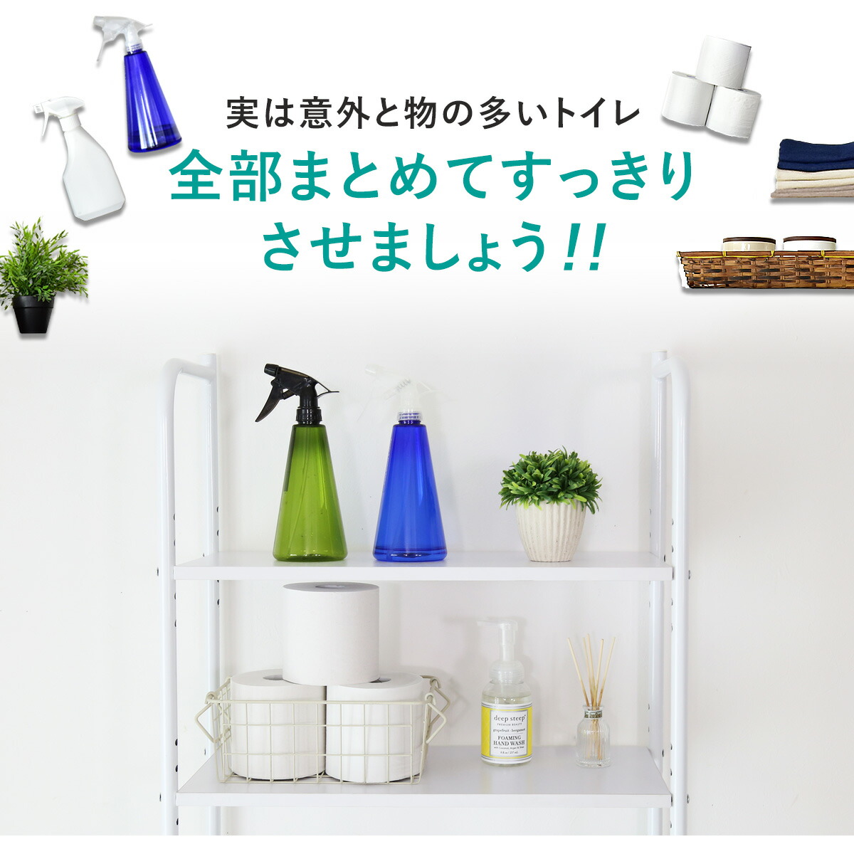 トイレラック トイレ収納 収納棚 ラック 幅56 トイレ収納棚 3段 トイレットペーパー 掃除用品 掃除道具入れ サニタリー用品 ウォールシェルフ スリムラック 高さ 壁面収納
