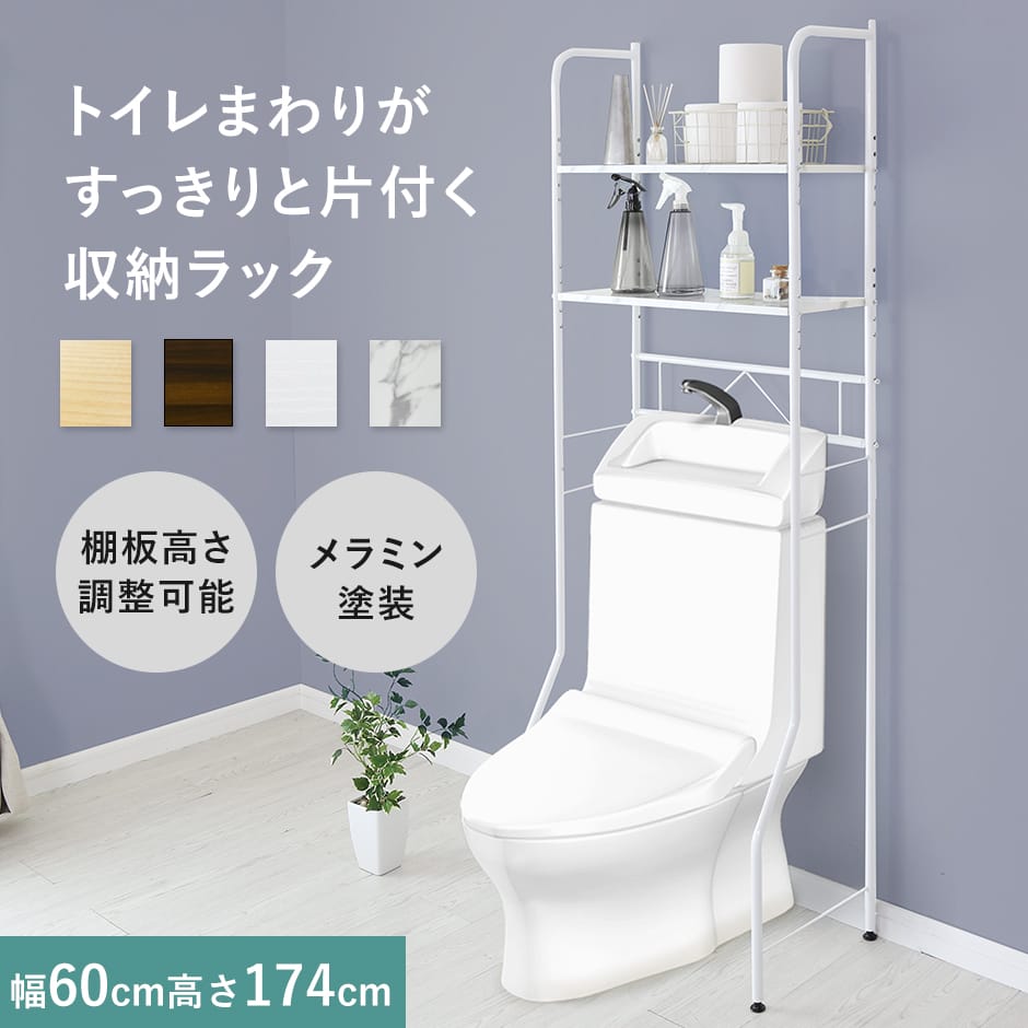 トイレラック トイレ収納 収納棚 ラッ ホワイトメープル ウォルナット ホワイト マーブル