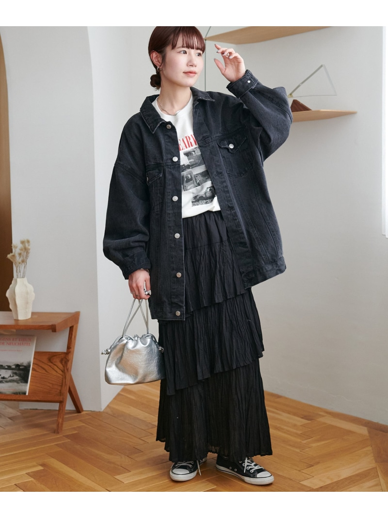 どんなボトムスとも合わせやすい着丈で幅広いスタイリングを楽しめます♪デニムオンデニムでこなれ感のあるスタイリングもおすすめです。