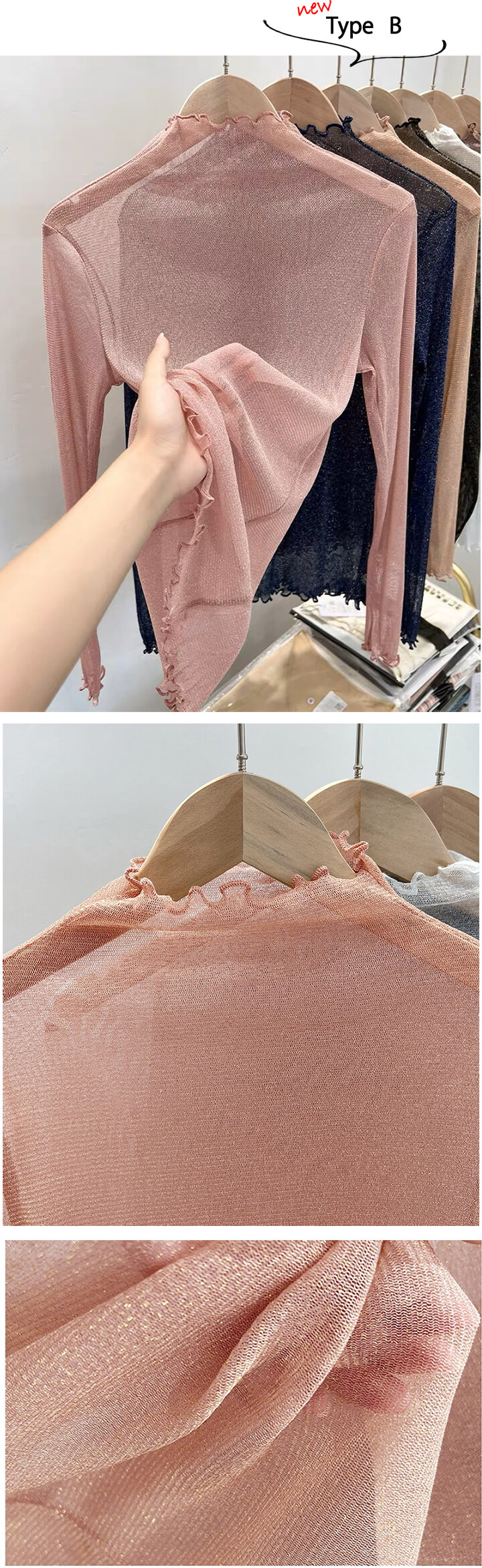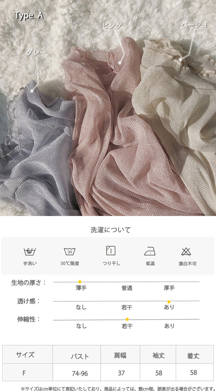 1A22 ラメ入り ハーフネック シア レディースファッション 特集 Type A(グレー) Type A(ピンク) Type A(ベージュ) Type A(ブラック) Type B(シルバー) Type B(ベージュ) Type B(ピンク) Type B(グレー) Type B(ブラック)